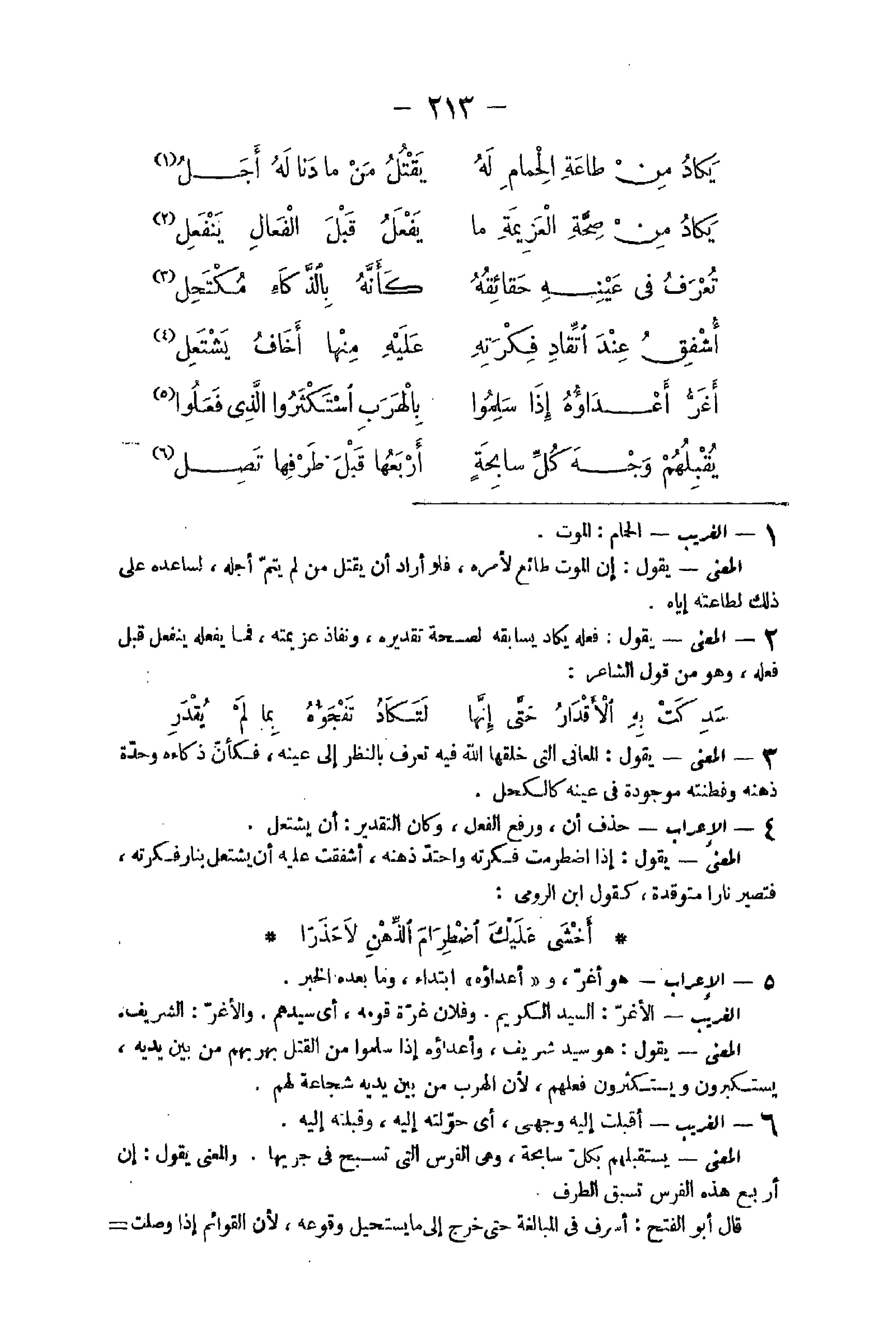 17 - الْإِعْرَاب حذف أَن وَرفع الْفِعْل وَكَانَ التَّقْدِير أَن يشتعل الْمَعْنى يَقُول إِذا اضطرمت فكرته واحتد ذهنه أشفقت عَلَيْهِ أَن يشتعل بِنَار فكرته فَتَصِير نَارا متوقدة كَقَوْل ابْن الرُّومِي