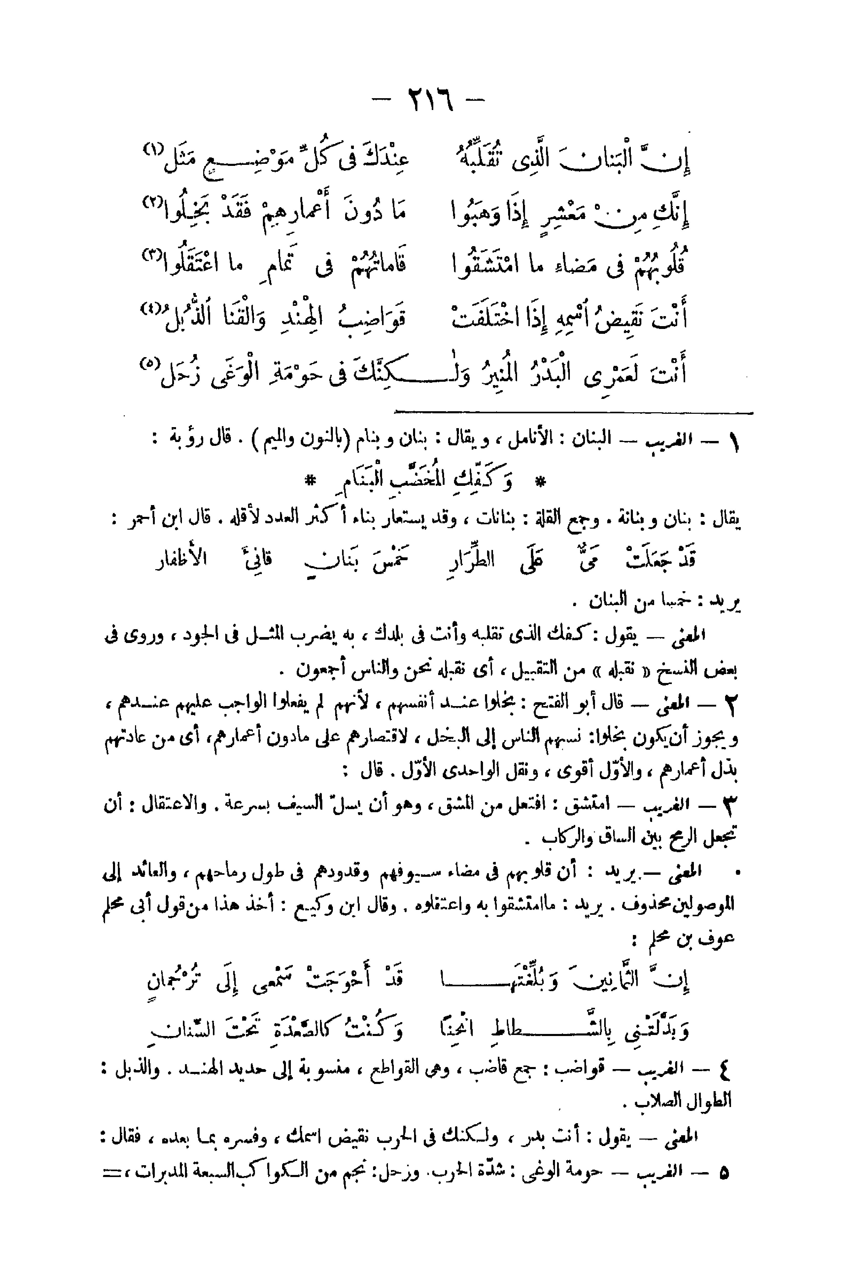 31 - الْغَرِيب قواضب جمع قاضب وَهِي القواطع منسوبة إِلَى حَدِيد الْهِنْد والذبل الطوَال الصلاب الْمَعْنى يَقُول أَنْت بدر وَلَكِنَّك فِي الْحَرْب نقيض اسْمك وَفَسرهُ بِمَا بعده فَقَالَ