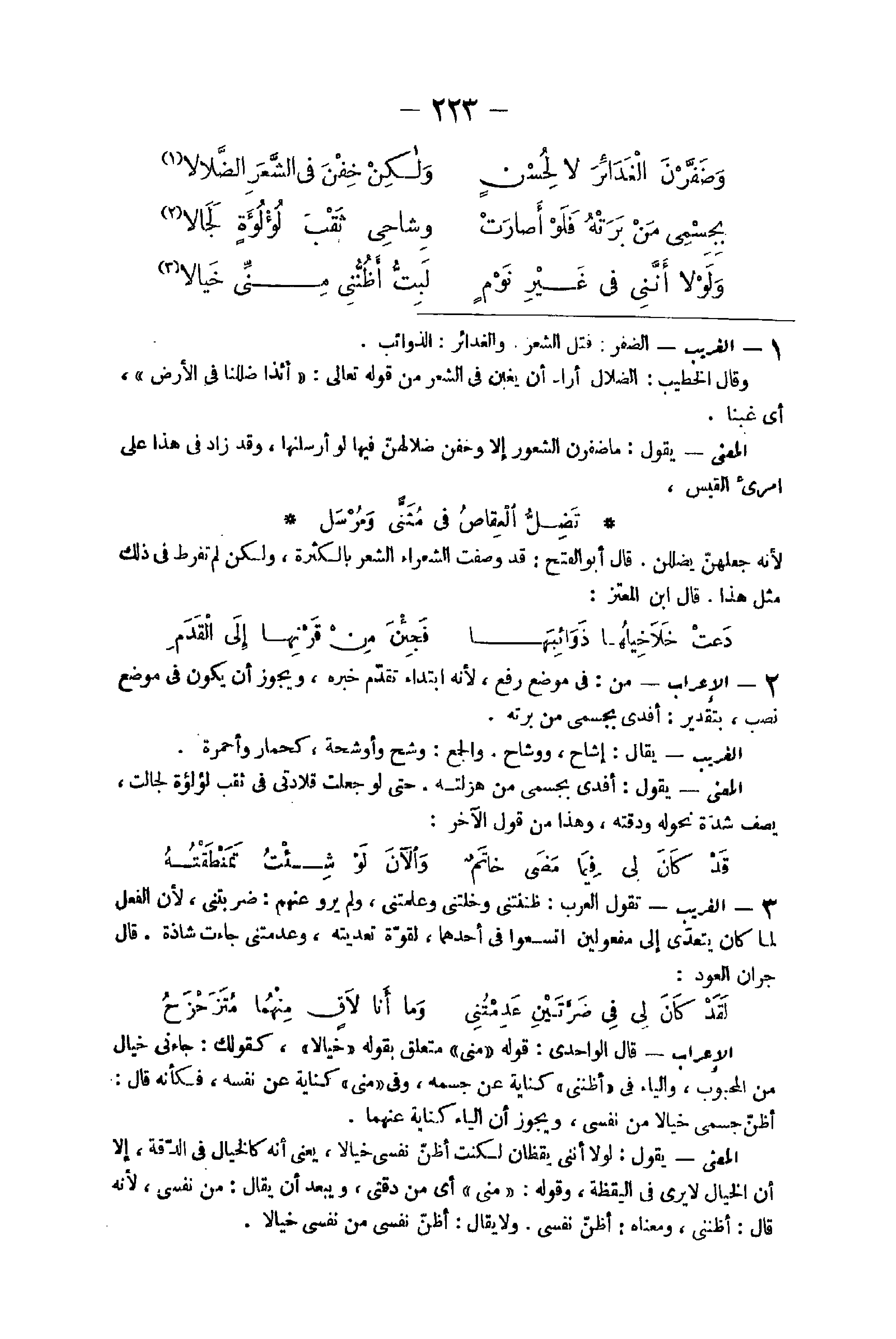 لِأَنَّهُ جَعلهنَّ يضللن قَالَ أَبُو الْفَتْح قد وصفت الشُّعَرَاء الشّعْر بِالْكَثْرَةِ وَلَكِن لم نفرط فِي ذَلِك مثل هَذَا قَالَ ابْن المعتز
