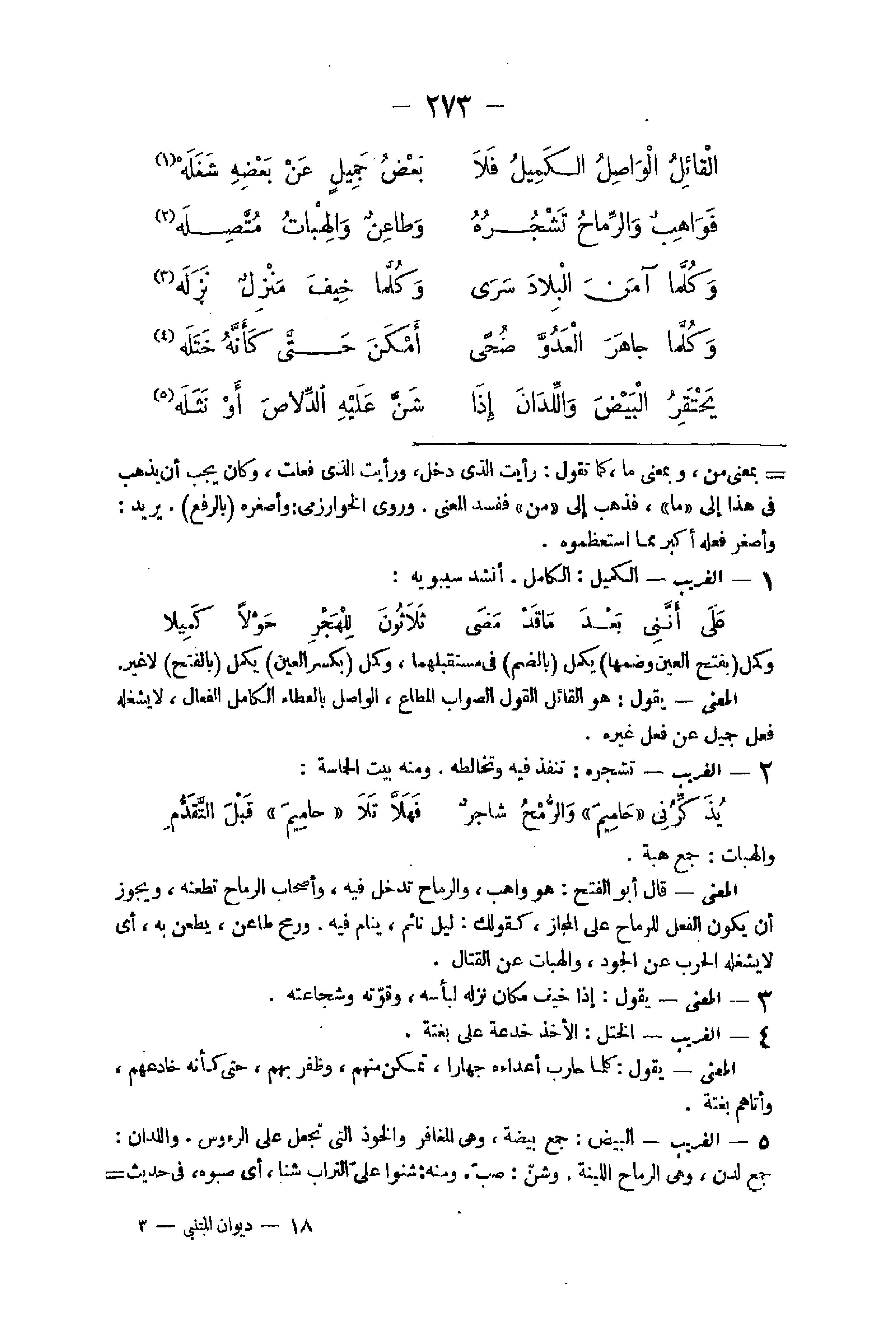 وكمل بِفَتْح الْعين وَضمّهَا يكمل بِالضَّمِّ فِي مستقبلهما وكمل بِكَسْر الْعين يكمل بِالْفَتْح لَا غير الْمَعْنى يَقُول هُوَ الْقَائِل الفول الصَّوَاب المطاع الْوَاصِل بالعطاء الْكَامِل لَا يشْغلهُ فعل جميل عَن فعل غَيره
