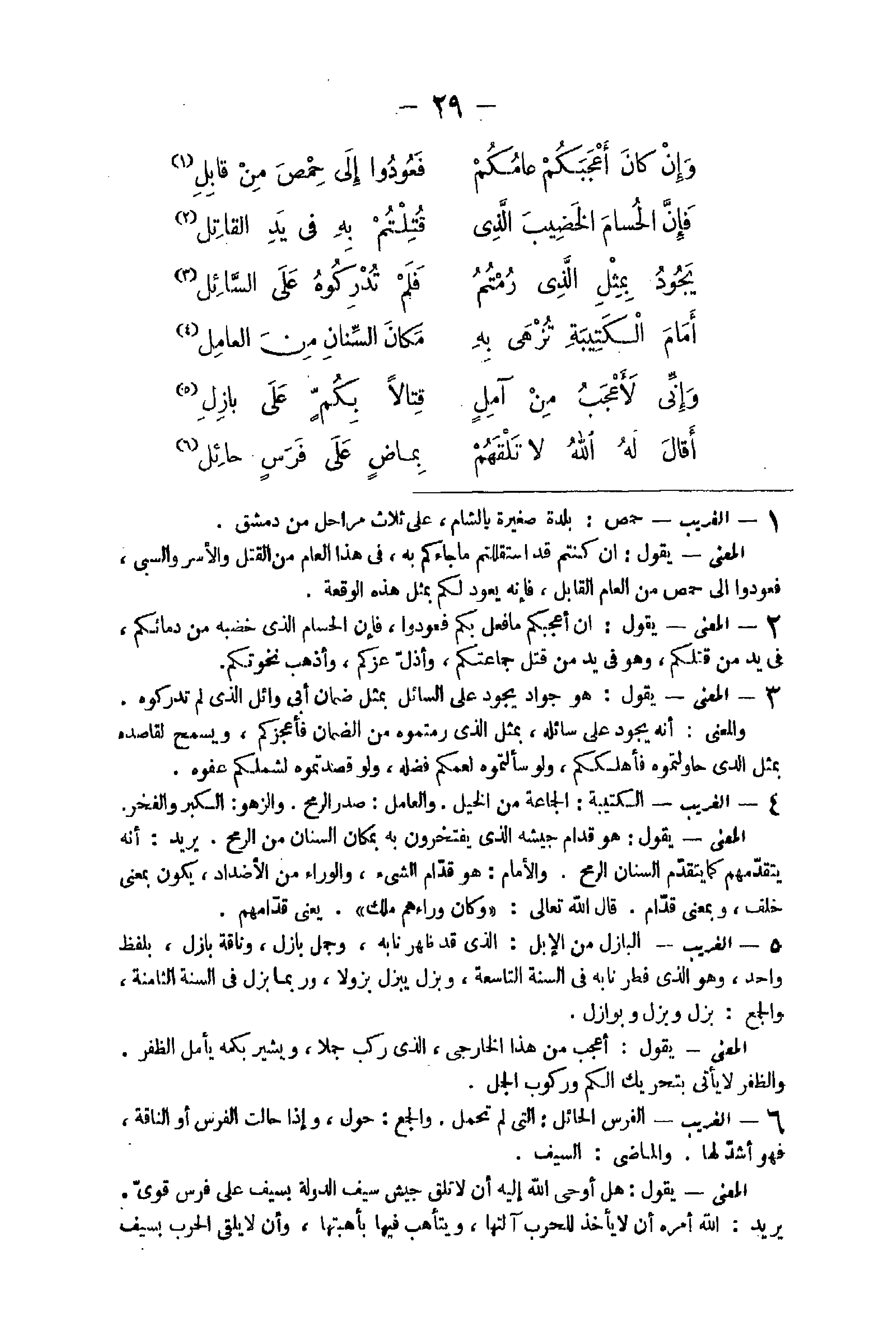 - الْغَرِيب حمص بَلْدَة صَغِيرَة بِالشَّام على ثَلَاث مراحل من دمشق الْمَعْنى يَقُول إِن كُنْتُم قد استقللتم مَا جَاءَكُم بِهِ فِي هَذَا الْعَام من الْقَتْل والأسر والسبي فعودوا إِلَى حمص من الْعَام الْقَابِل فَإِنَّهُ يعود لكم بِمثل هَذِه الْوَقْعَة
