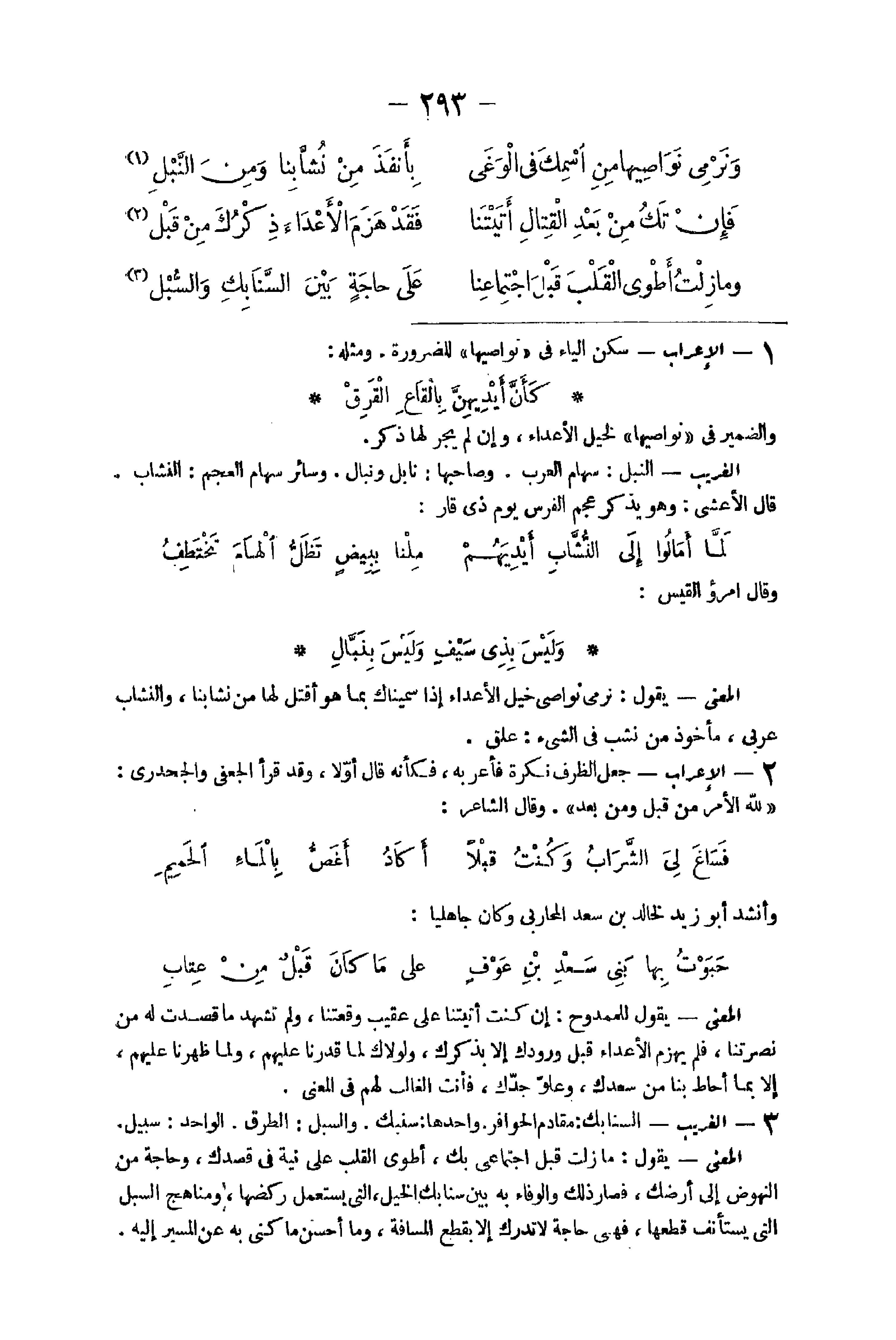 - الْإِعْرَاب سكن الْيَاء فِي نَوَاصِيهَا للضَّرُورَة وَمثله