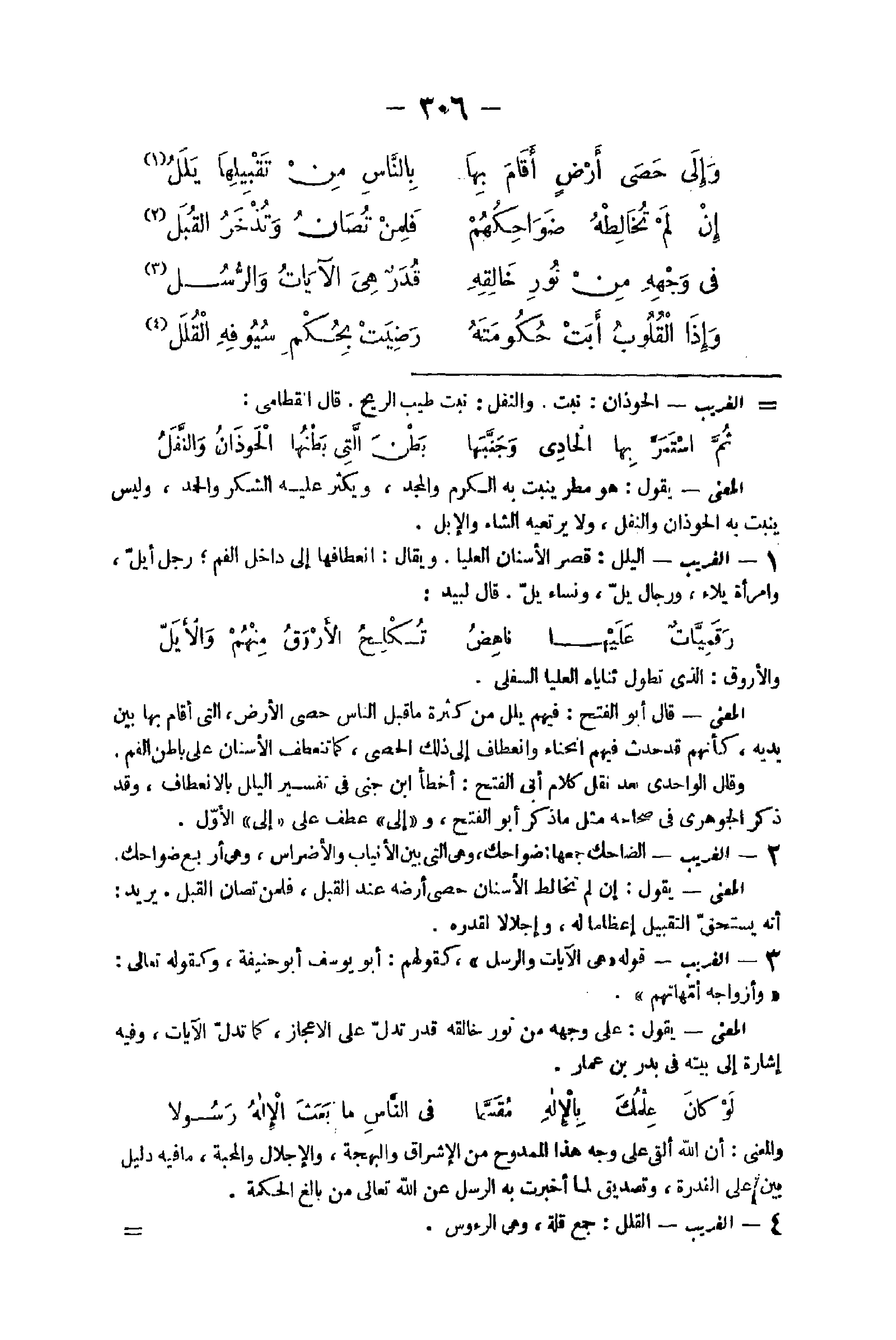 والأروق الَّذِي تطول ثناياه الْعليا السُّفْلى الْمَعْنى قَالَ أَبُو الْفَتْح فيهم يال من كَثْرَة مَا قببل النَّاس حَصى الأَرْض الَّتِي أَقَامَ بهَا بَين يَدَيْهِ كَأَنَّهُمْ قد حدث فيهم أنحاء وانعطاف إِلَى ذَلِك الْحَصَى كَمَا تنعطف الْأَسْنَان على بَاطِن الْفَم وَقَالَ الواحدي بعد نقل كَلَام أَبُو الْفَتْح أَخطَأ ابْن جنى فِي تَفْسِير اليلل بالانعطاف وَقد ذكر الْجَوْهَرِي فِي صحاحه مثل مَا ذكر أَبُو الْفَتْح وَإِلَى عطف على إِلَى الأول