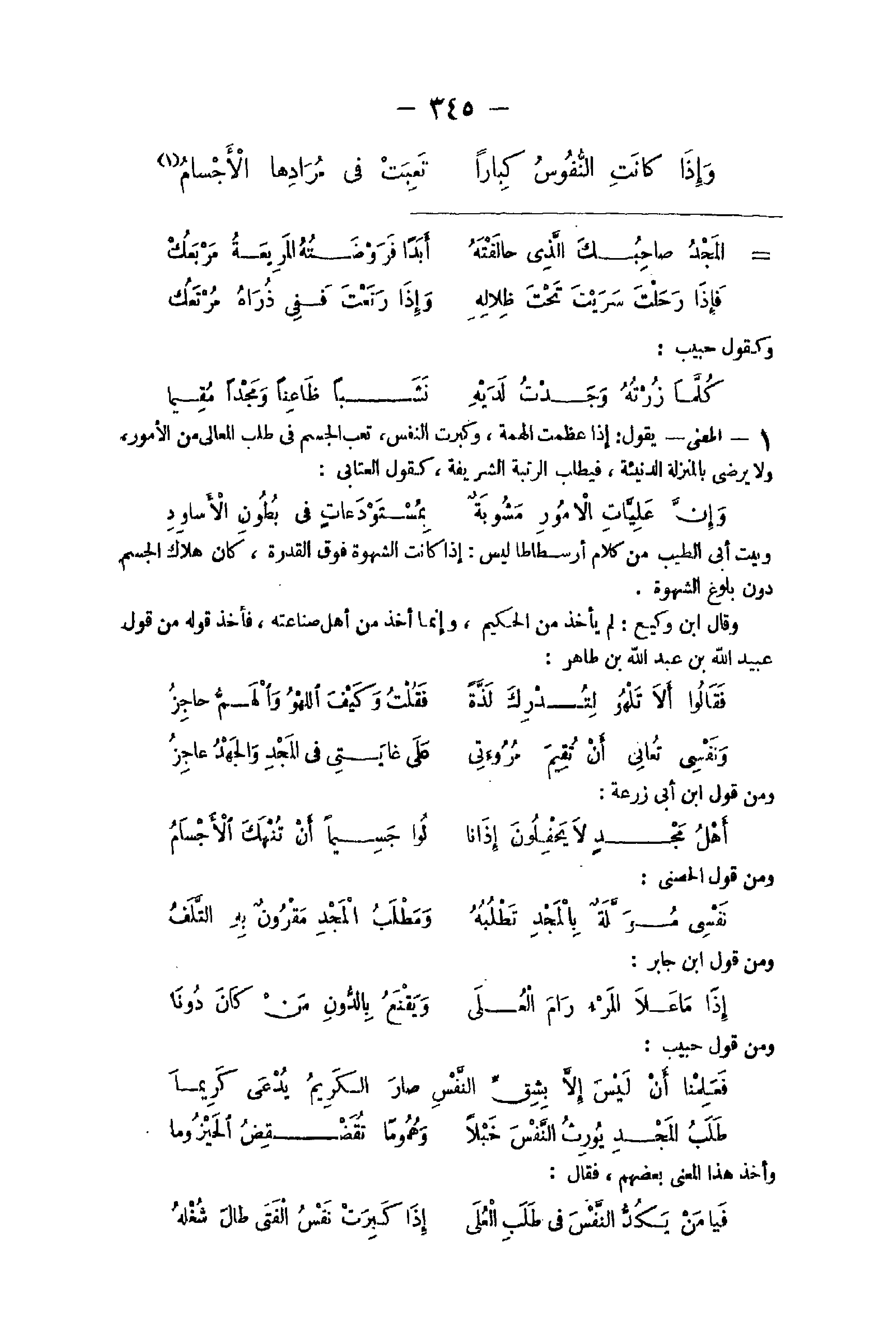 (فَيامَنْ يَكُدُّ النَّفْس فِي طَلبِ العُلى ... إِذا كَبِرتْ نَفْسُ الفَتى طَال شُغْلُهُ)