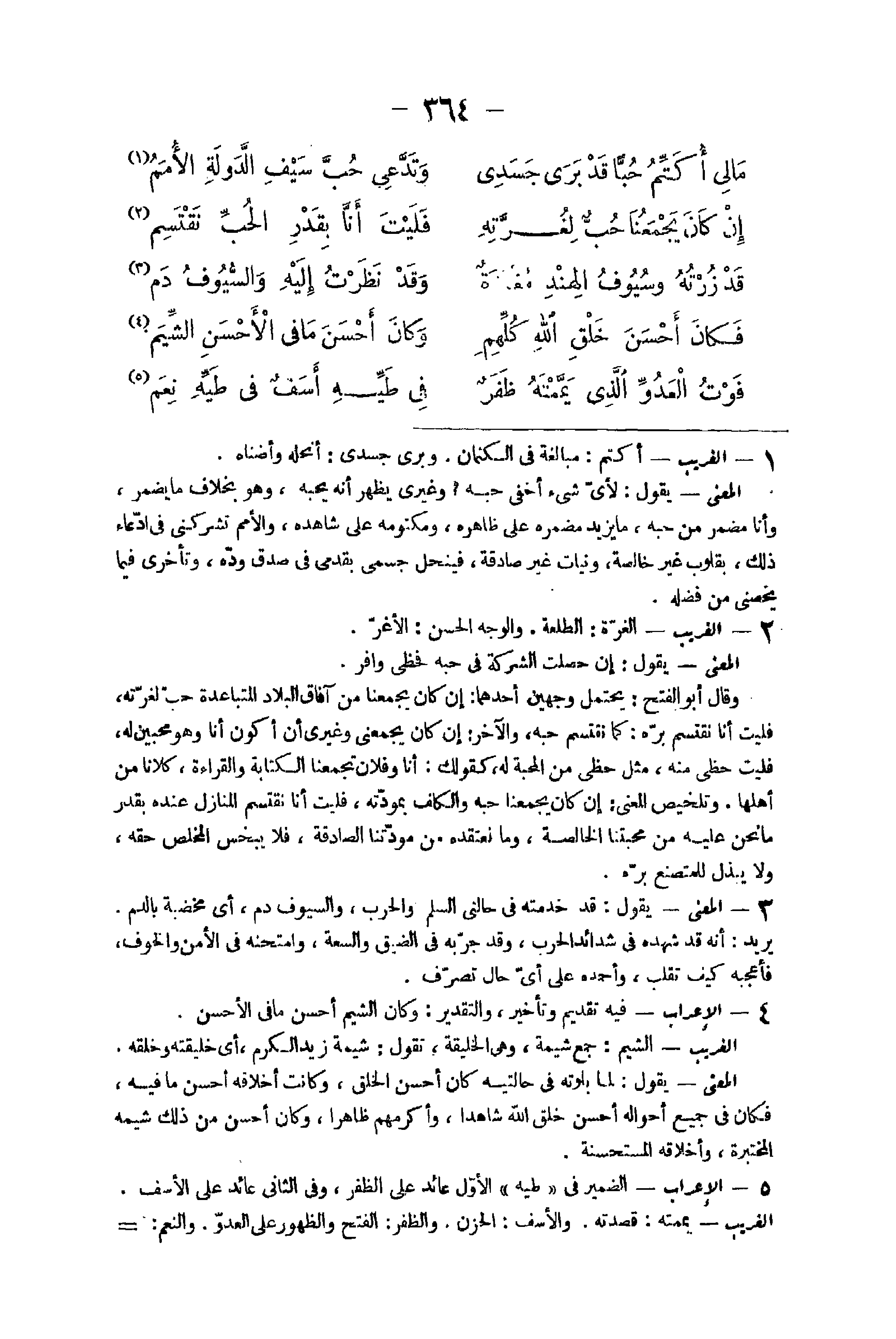 6 - الْإِعْرَاب الضَّمِير فِي طيه الأول عَائِد على الظفر وَفِي الثَّانِي عَائِد عَليّ الأسف الْغَرِيب يممته قصدته والأسف الْحزن وَالظفر الْفَتْح والظهور على الْعَدو