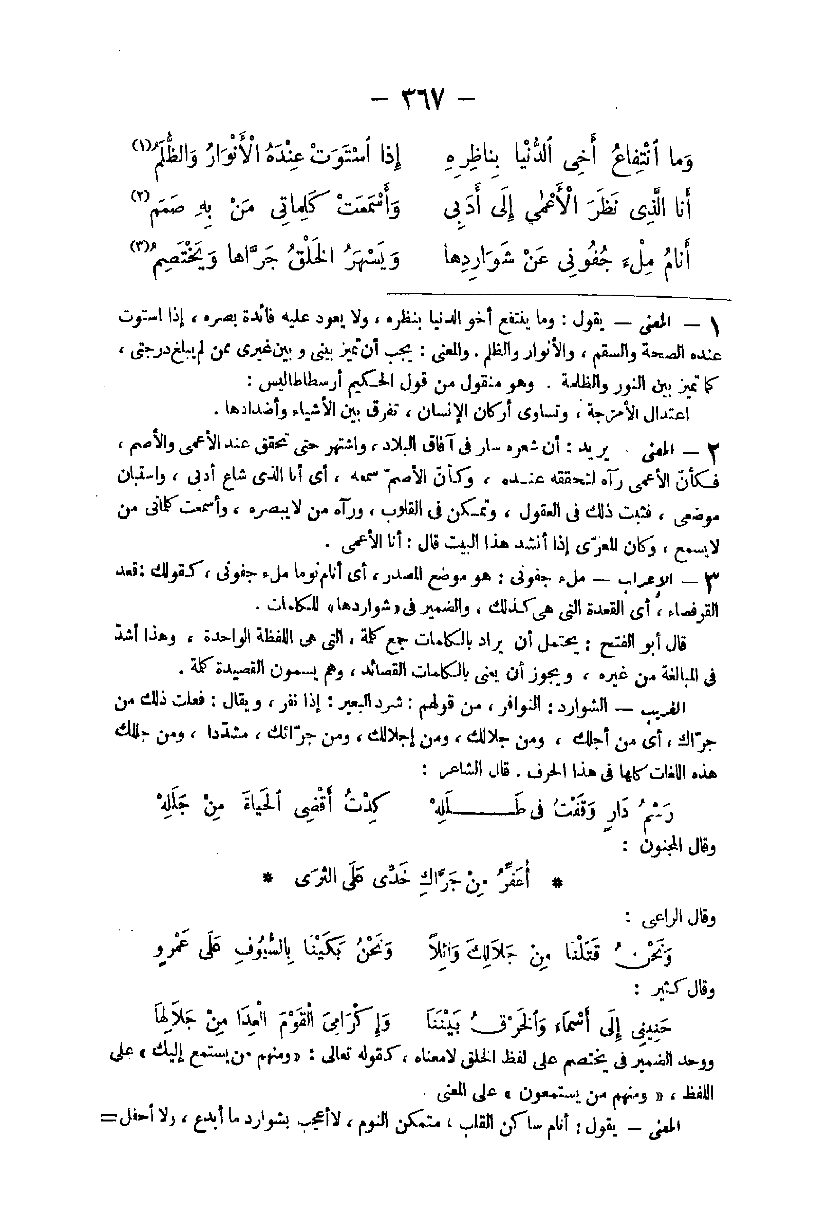- الْمَعْنى يَقُول وَمَا ينْتَفع أَخُو الدُّنْيَا بنظره وَلَا يعود عَلَيْهِ فَائِدَة بصده إِذا اسْتَوَت عِنْده الصِّحَّة والسقم والأنوار وَالظُّلم وَالْمعْنَى يجب أَن تميز بيني وَبَين غَيْرِي مِمَّن لم يبلغ درجتي كَمَا تميز بَين النُّور والظلمة وَهُوَ مَنْقُول من قَول الْحَكِيم أرسطاطاليس اعْتِدَال الأمزجة وتساوي أَرْكَان الْإِنْسَان تفرق بَين الْأَشْيَاء وأضدادها