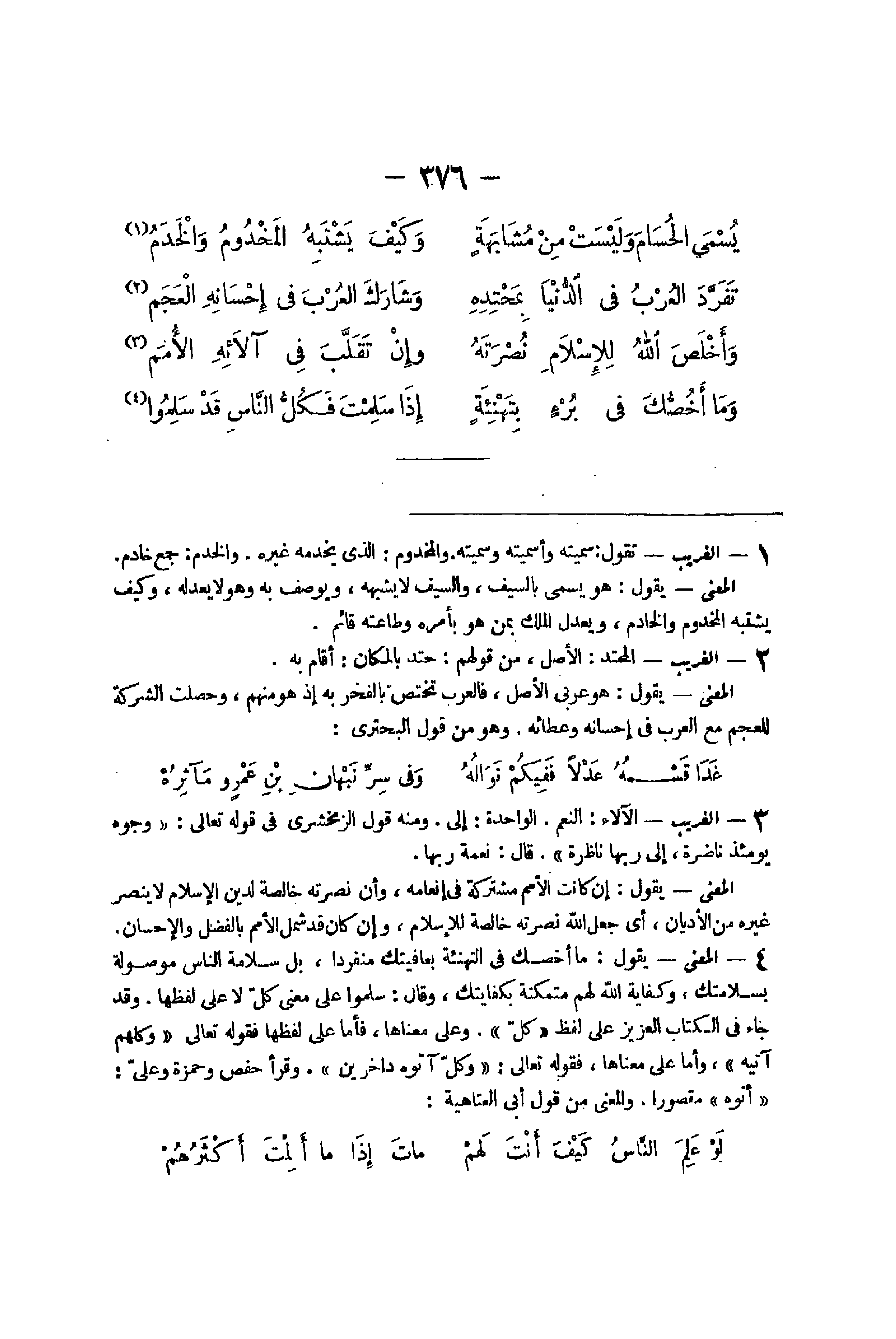8 - الْمَعْنى يَقُول مَا أخصك فِي التهنئة بعافيتك مُنْفَردا بل سَلامَة النَّاس مَوْصُولَة بسلامتك وكفاية الله لَهُم متمكنة بكفايتك وَقَالَ سلمُوا على معنى كل لَا على لَفظهَا وَقد جَاءَ فِي الْكتاب الْعَزِيز على لفظ كل وعَلى مَعْنَاهَا فَأَما على لَفظهَا فَقَوله تَعَالَى {وَكلهمْ آتيه} وَأما على مَعْنَاهَا فَقَوله تَعَالَى {وكل أَتَوْهُ داخرين} وَقَرَأَ حَفْص وَحَمْزَة وعَلى {أَتَوْهُ} مَقْصُورا وَالْمعْنَى من قَول أبي الْعَتَاهِيَة