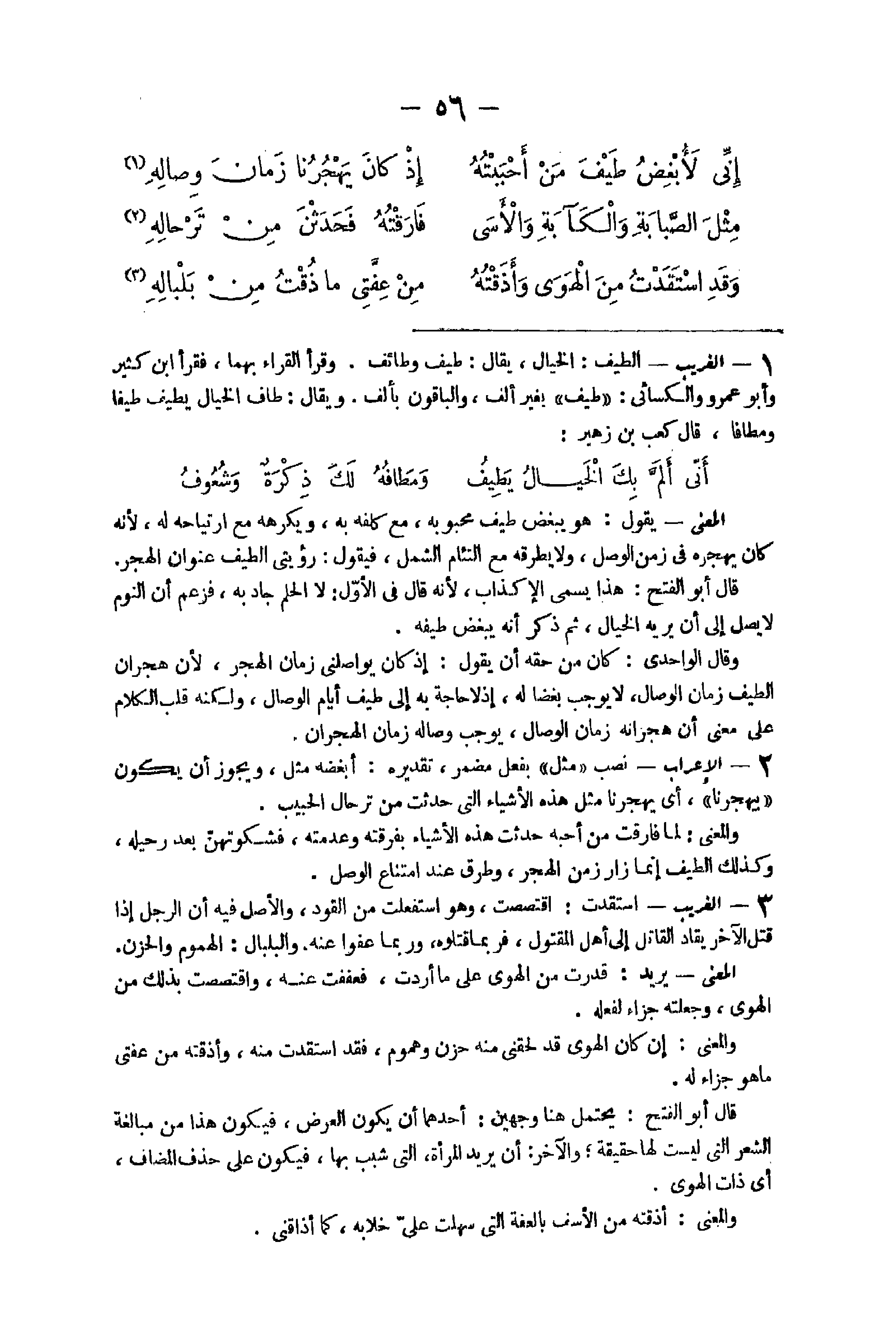 (أنَّي ألَّم بِكَ الخَيالُ يَطِيفُ ... وَمَطافُهُ لَكَ ذِكْرَةٌ وَشُعُوفُ)