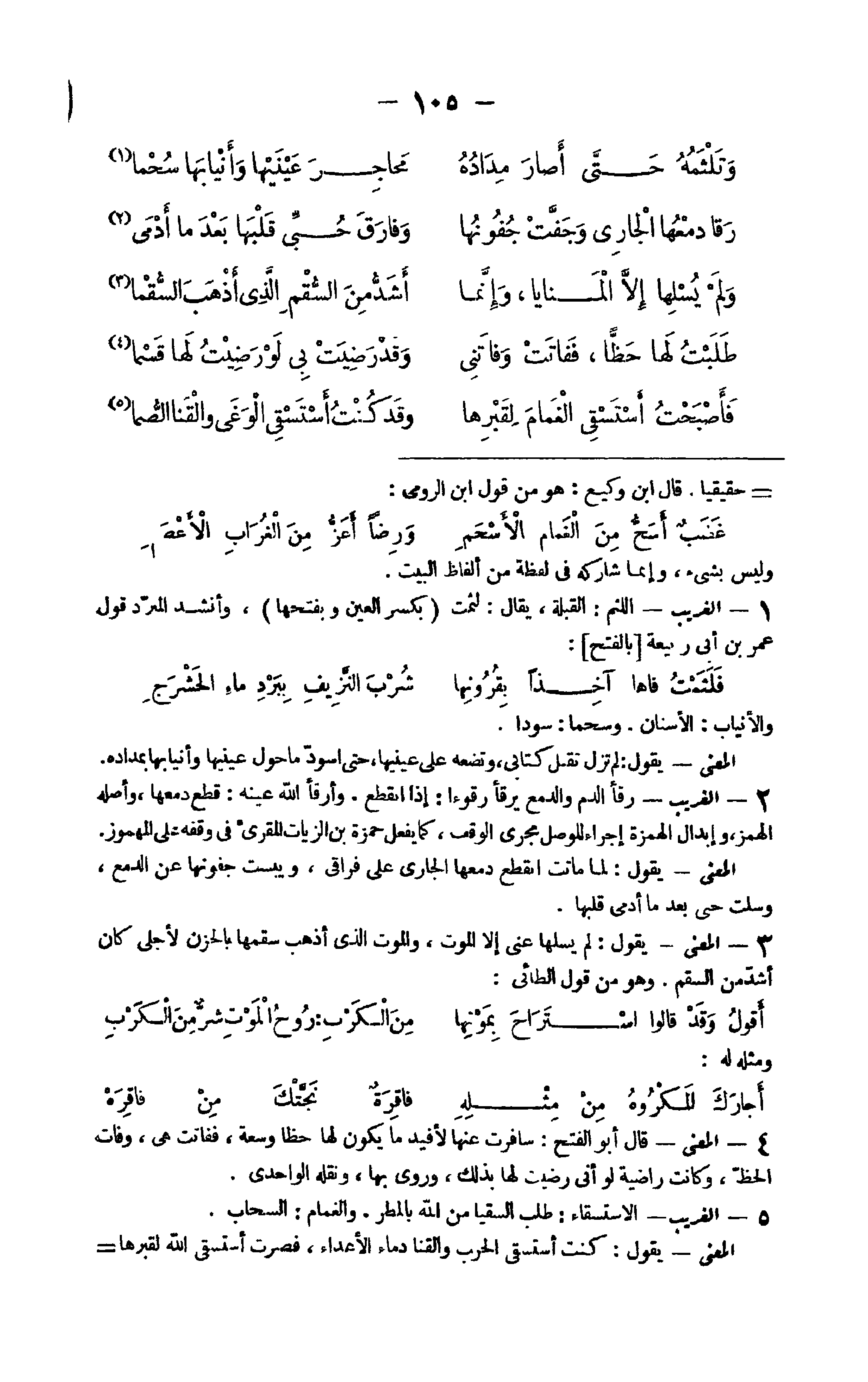 13 - الْغَرِيب رقأ الدَّم والدمع يرقأ رقوءا إِذا انْقَطع وأرقأ الله عينه قطع دمعها وَأَصله الْهَمْز وإبدال الْهمزَة إِجْرَاء للوصل مجْرى الْوَقْف كَمَا يفعل حَمْزَة بن الزيات المقرى فِي وَقفه على المهموز الْمَعْنى يَقُول لما مَاتَت انْقَطع دَمهَا الْجَارِي على فراقي ويبست جفونها عَن الدمع وسلت حَتَّى بعد مَا أدْمى قَلبهَا