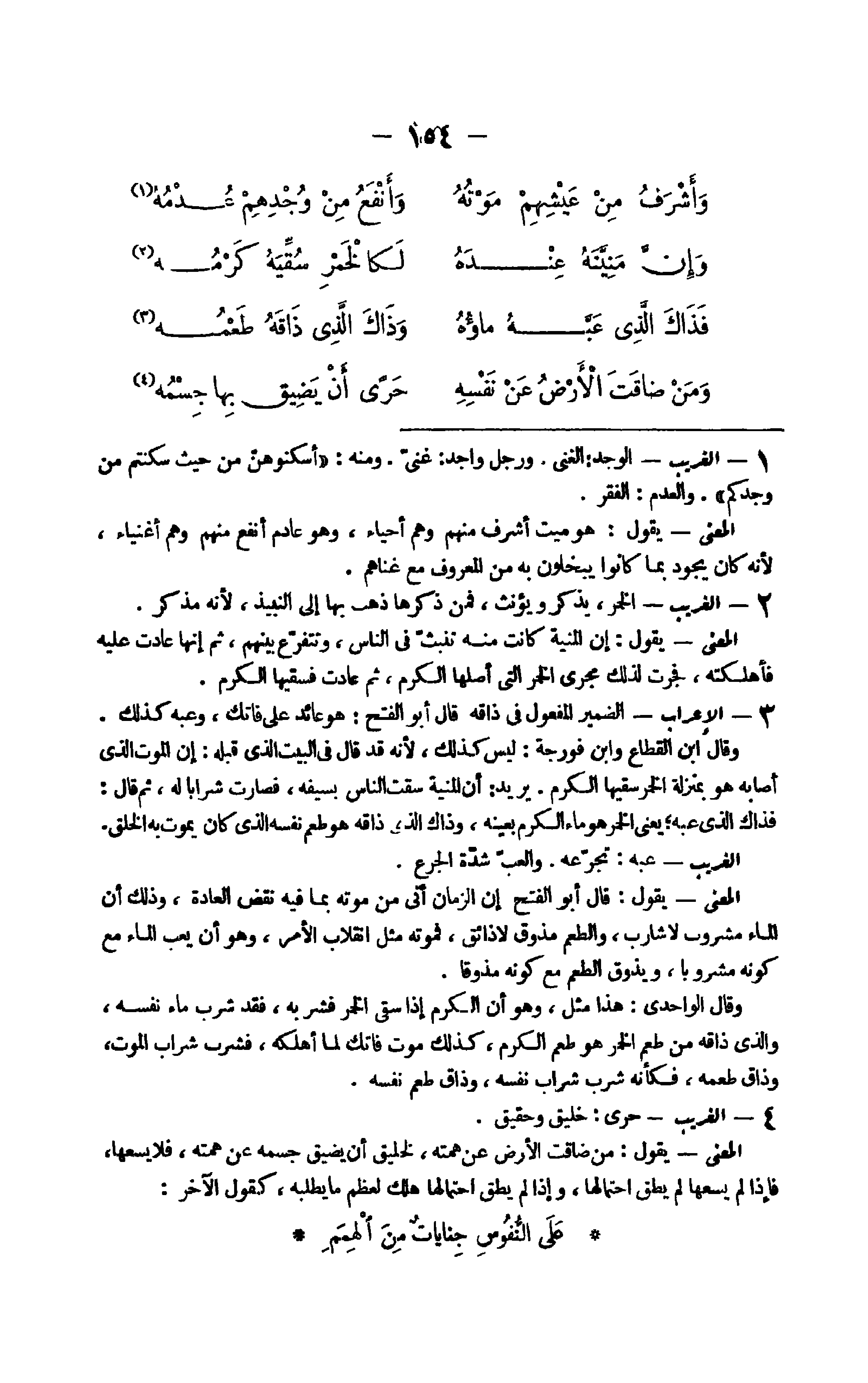 - الْغَرِيب الوجد الْغنى وَرجل وَاجِد غنى وَمِنْه أسكنوهن من حَيْثُ سكنتم من وجدكم والعدم الْفقر الْمَعْنى يَقُول هُوَ ميت أشرف مِنْهُم وهم أَحيَاء وَهُوَ عادم أَنْفَع مِنْهُم وهم أَغْنِيَاء لِأَنَّهُ كَانَ يجود بِمَا كَانُوا يَبْخلُونَ بِهِ من الْمَعْرُوف مَعَ غناهم