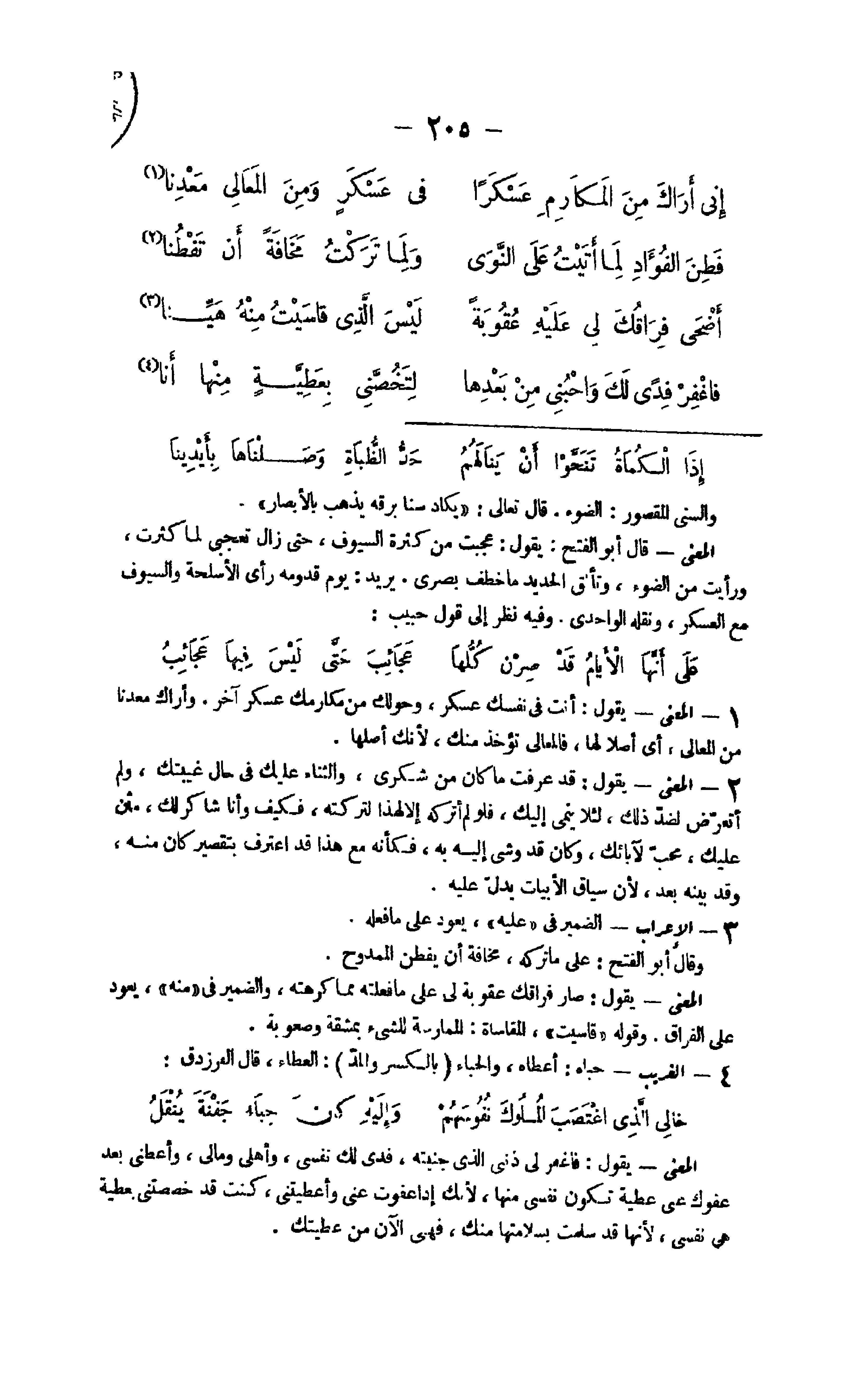 31 - الْمَعْنى يَقُول أَنْت فِي نَفسك عَسْكَر وحولك من مكارمك عَسْكَر آخر وأراك معدنا من الْمَعَالِي أَي أصلأ لَهَا فالمعالي تُؤْخَذ مِنْك لِأَنَّك أَصْلهَا