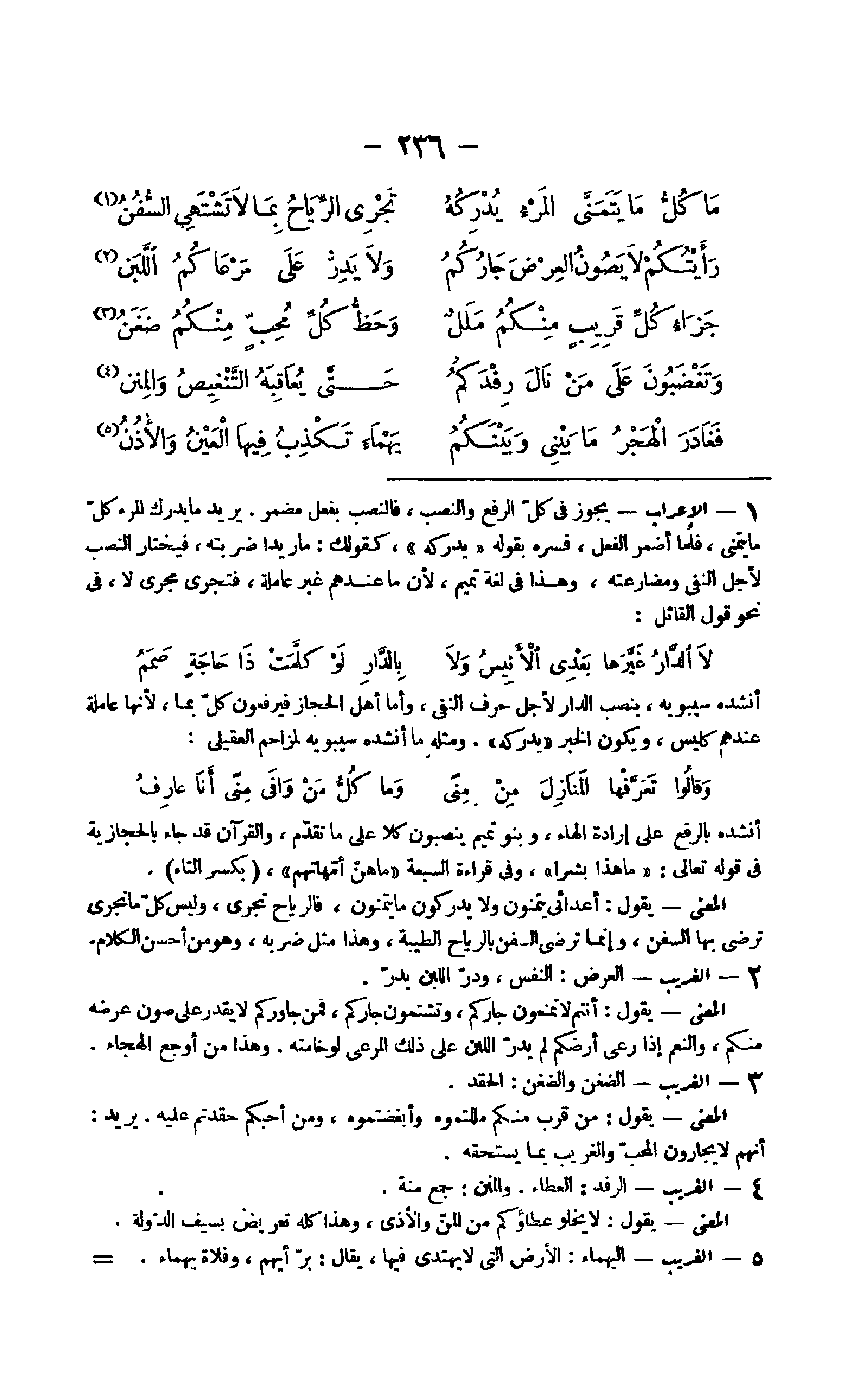 أنْشدهُ بِالرَّفْع على إِرَادَة الْهَاء وَبَنُو تَمِيم ينصبون كلا على مَا تقدم وَالْقُرْآن قد جَاءَ بالحجازية فِي قَوْله تَعَالَى {مَا هَذَا بشرا} وَفِي قِرَاءَة السَّبْعَة {مَا هن أمهاتهم} بِكَسْر التَّاء الْمَعْنى يَقُول أعدائي يتمنون وَلَا يدركون مَا يتمنون فالرياح تجْرِي وَلَيْسَ كل مَا تجْرِي ترْضى بهَا السفن وَإِنَّمَا ترْضى السفن بالرياح الطّيبَة وَهَذَا مثل ضربه وَهُوَ من أحسن الْكَلَام