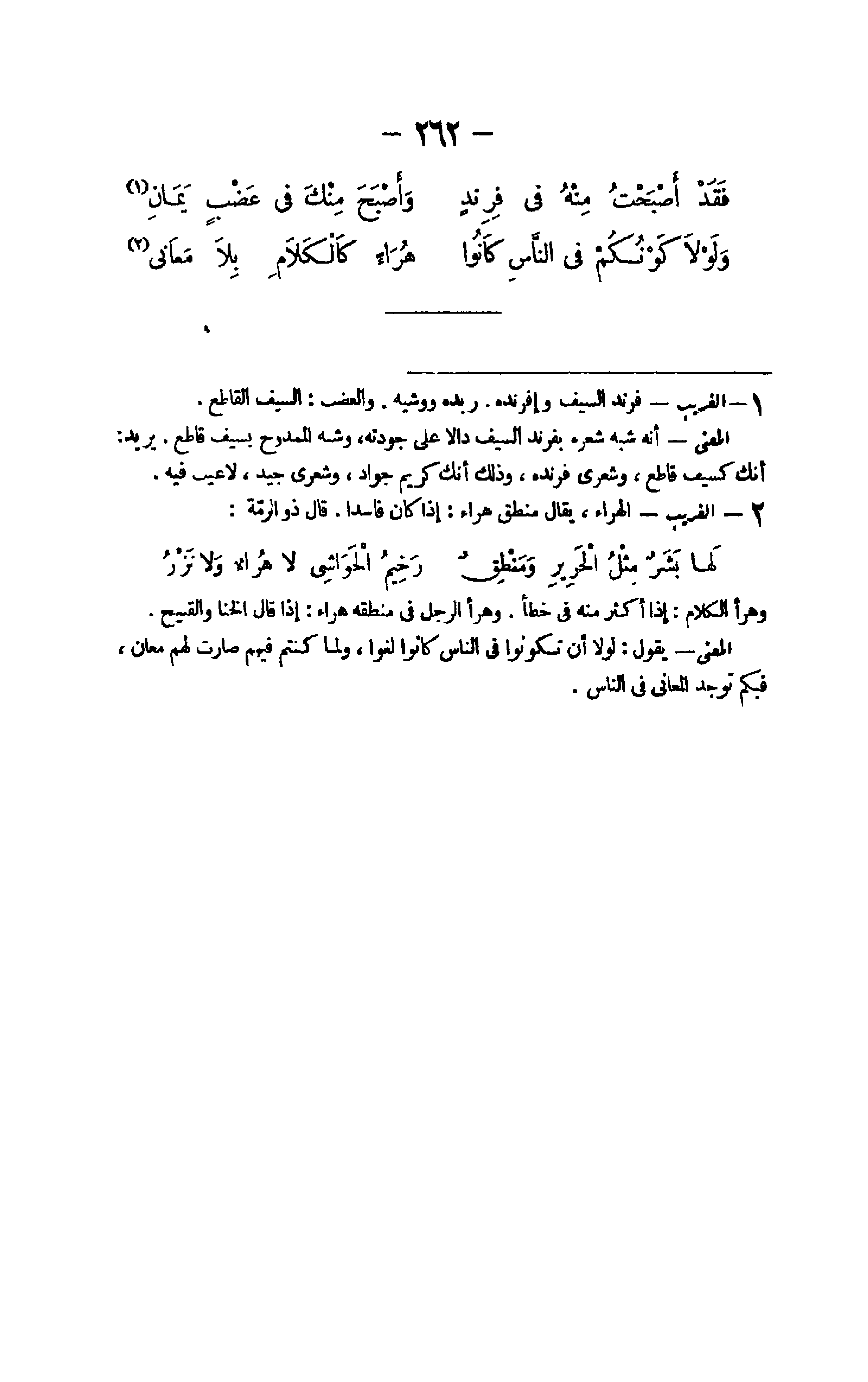 - الْغَرِيب فرند السَّيْف وإفرنده ربده وشيه والعضب السَّيْف الْقَاطِع الْمَعْنى أَنه شبه شعره بفرند السَّيْف دَالا على جودته وَشبه الممدوح بِسيف قَاطع يُرِيد أَنَّك كسيف قَاطع وشعري فرنده وَذَلِكَ أَنَّك كريم جواد وشعري جيد لَا عيب فِيهِ