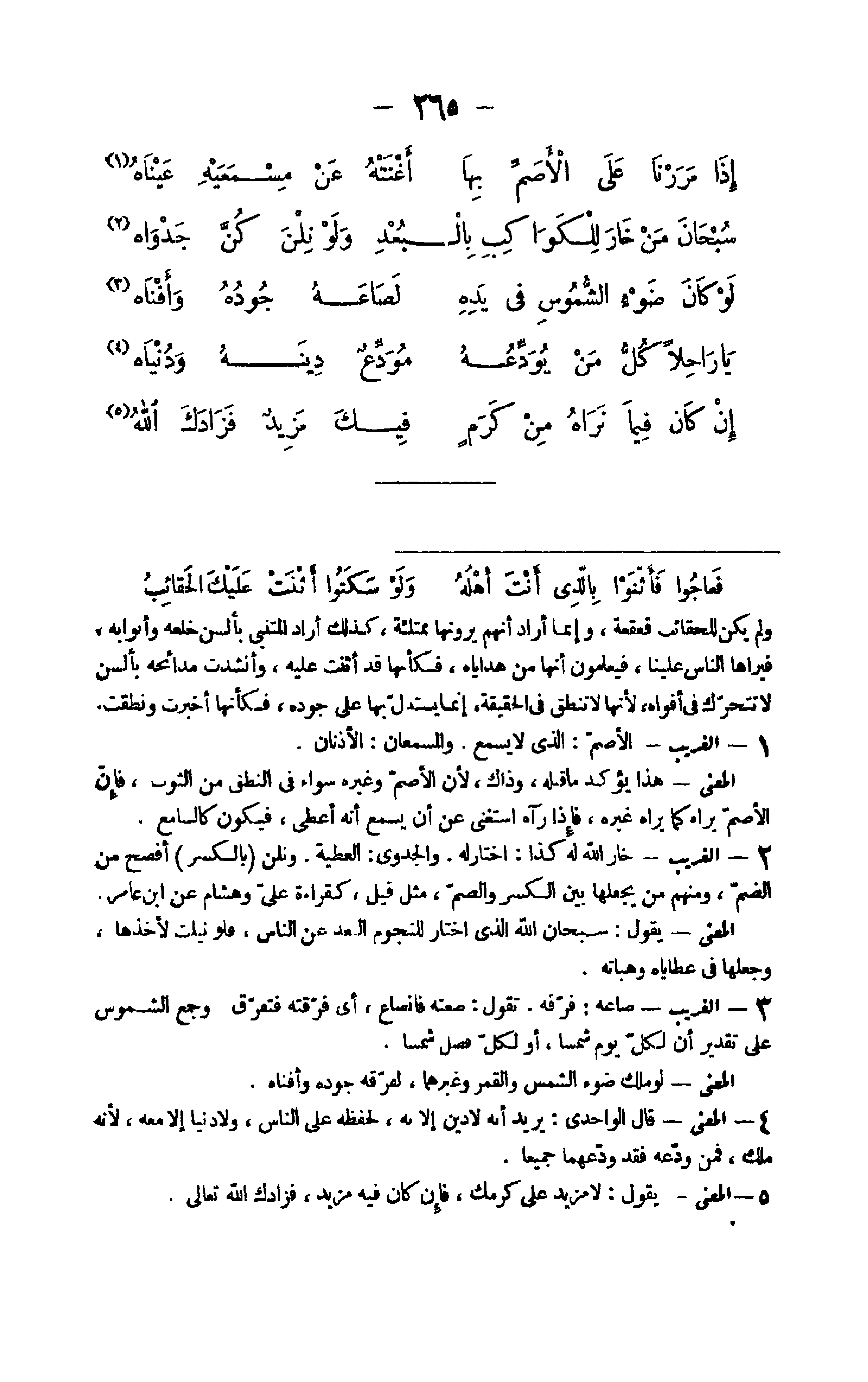 8 - الْغَرِيب صاعه فرقه تَقول صعته فانصاع أَي فرقته فَتفرق وَجمع الشموس على تَقْدِير أَن لكل يَوْم شمسا أَو لكل فصل شمسا الْمَعْنى لَو ملك ضوء الشَّمْس وَالْقَمَر وَغَيرهمَا لفرقه جوده وأفناه