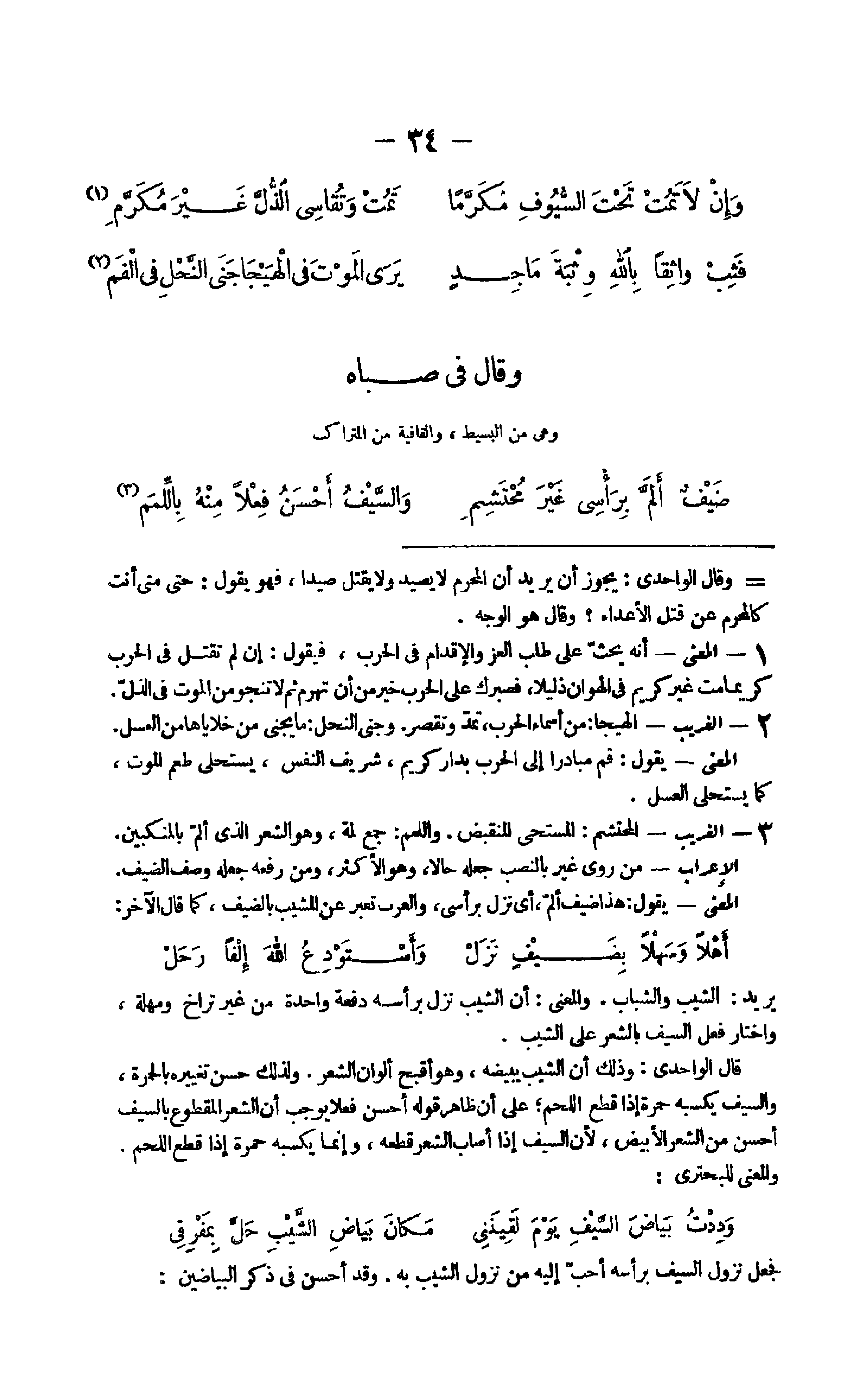 فَجعل نزُول السَّيْف بِرَأْسِهِ أحب إِلَيْهِ من نزُول الشيب بِهِ وَقد أحسن فِي ذكر البياضين