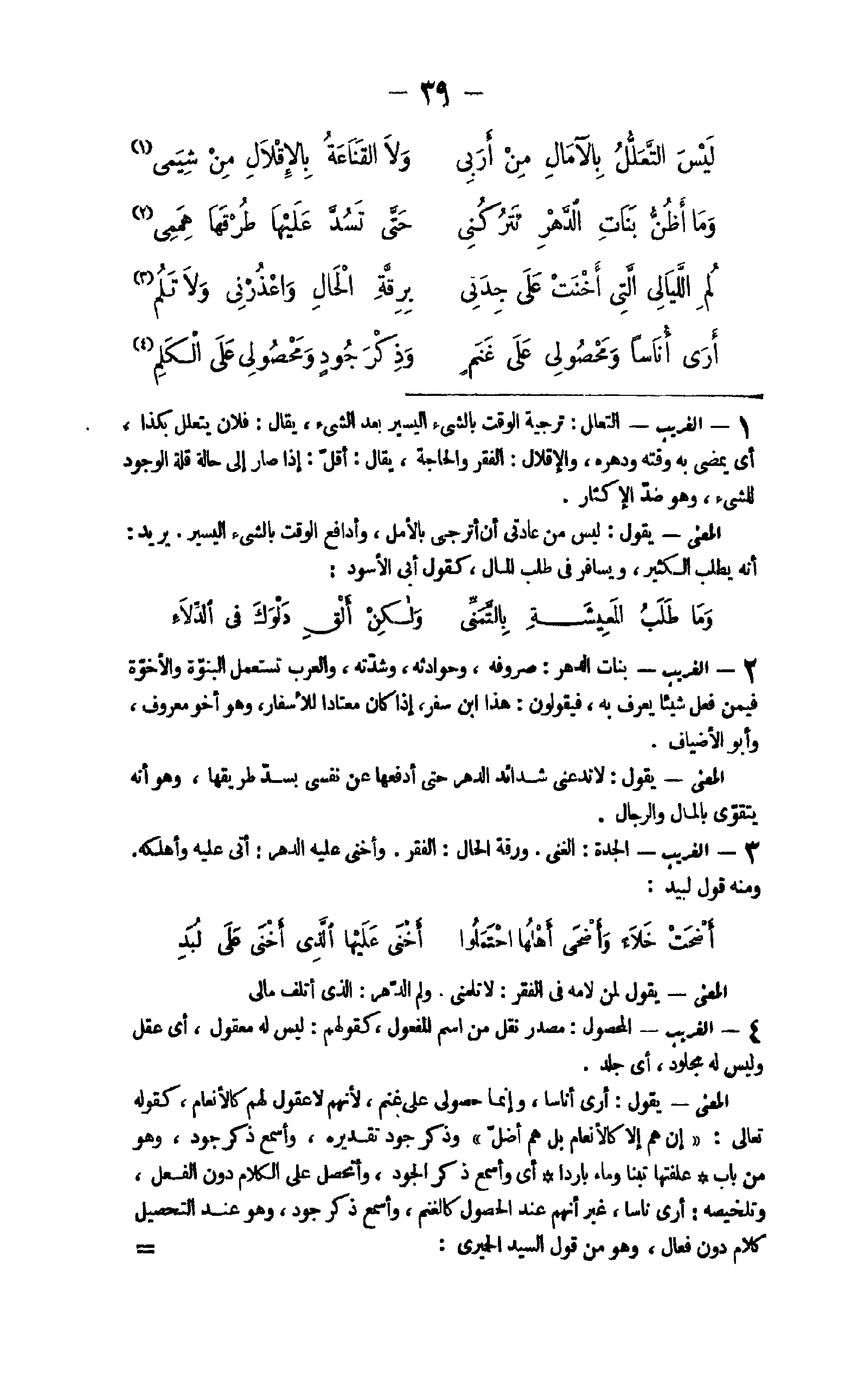 13 - الْغَرِيب بَنَات الدَّهْر صروفه وحوادثه وشدته وَالْعرب تسْتَعْمل الْبُنُوَّة والأخوة فِيمَن فعل شَيْئا يعرف بِهِ فَيَقُولُونَ هَذَا ابْن سفر إِذا كَانَ مُعْتَادا للأسفار وَهُوَ أَخُو مَعْرُوف وَأَبُو الأضياف الْمَعْنى يَقُول لَا تدعني شَدَائِد الدَّهْر حَتَّى أدفعها عَن نَفسِي بسد طريقها وَهُوَ أَنه يتقوى بِالْمَالِ وَالرِّجَال