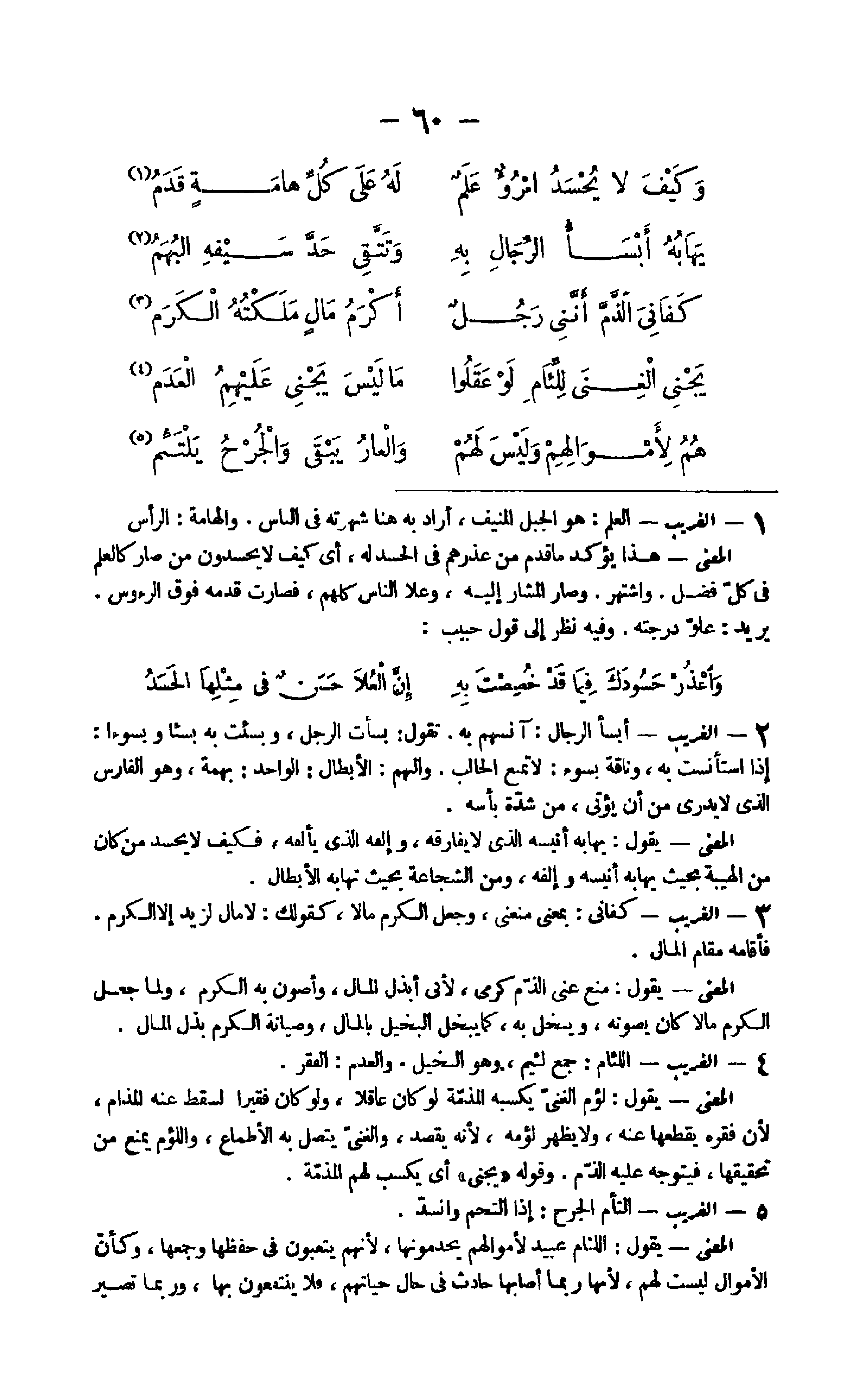 (واْعْذُرْ حَسُودَكَ فِيما قدْ خُصِصْتَ بِهِ ... إنَّ العُلا حَسَنٌ فِي مِثْلِهَا الحَسَدُ)
