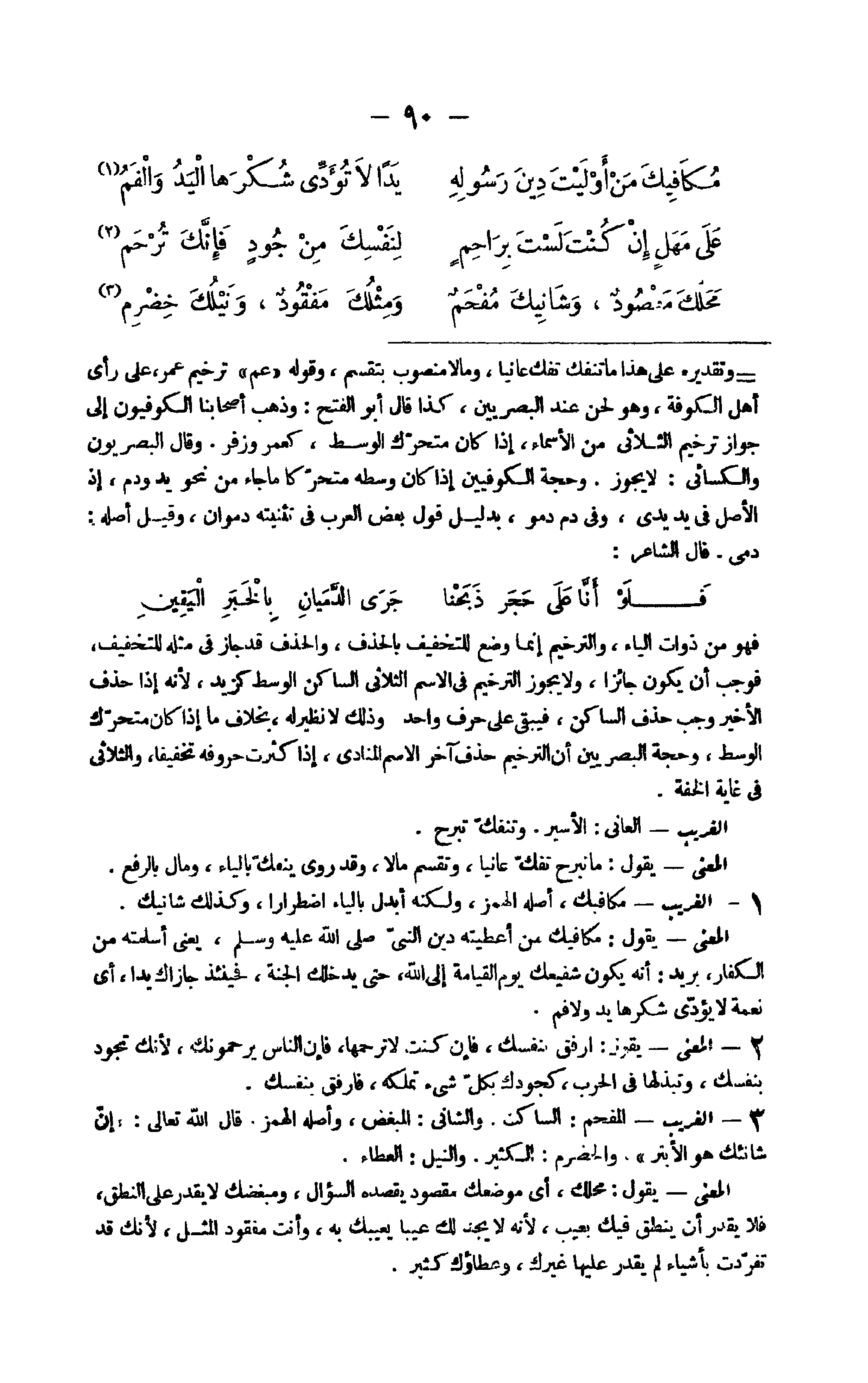 35 - الْغَرِيب مكافيك أَصله الْهَمْز وَلكنه أبدل بِالْيَاءِ اضطرارا وَكَذَلِكَ شانيك الْمَعْنى يَقُول مكافيك من أَعْطيته دين النَّبِي