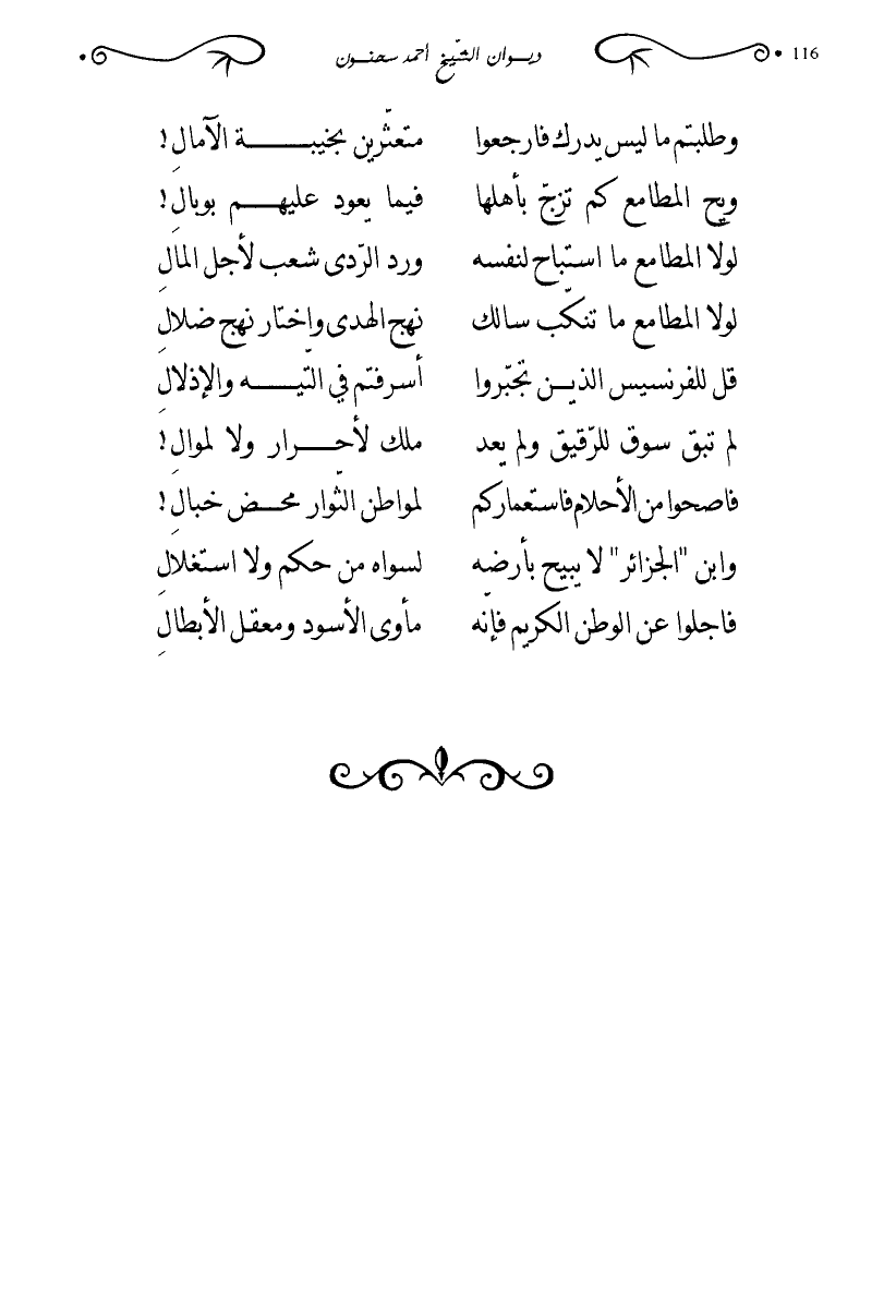 وابن "الجزائر" لا يبيح بأرضه … لسواه من حكم ولا استغلال
