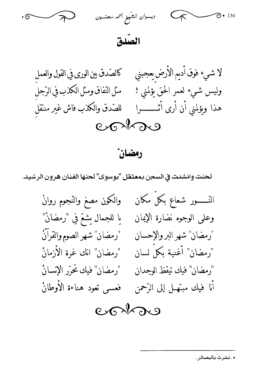 لا شيء فوق أديم الأرض يعجبني … كالصدق يبن الورى في القول والعمل