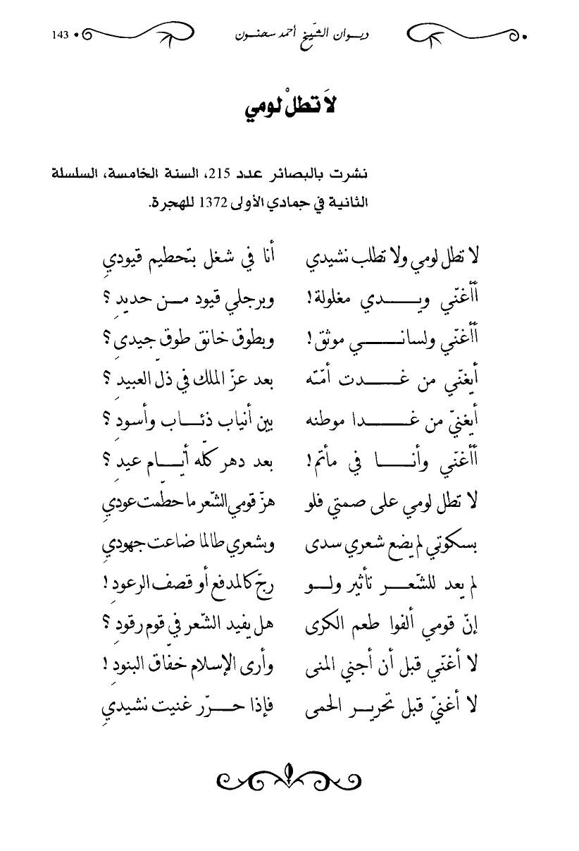 لا تطل لومي على صمتي فلو … هز قومي الشعر ما حطمت عودي