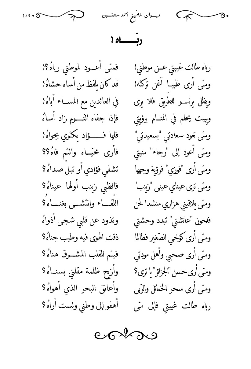 رباه طالت غيبتي فإلى متى أهفو إلى وطني ولست أراه؟