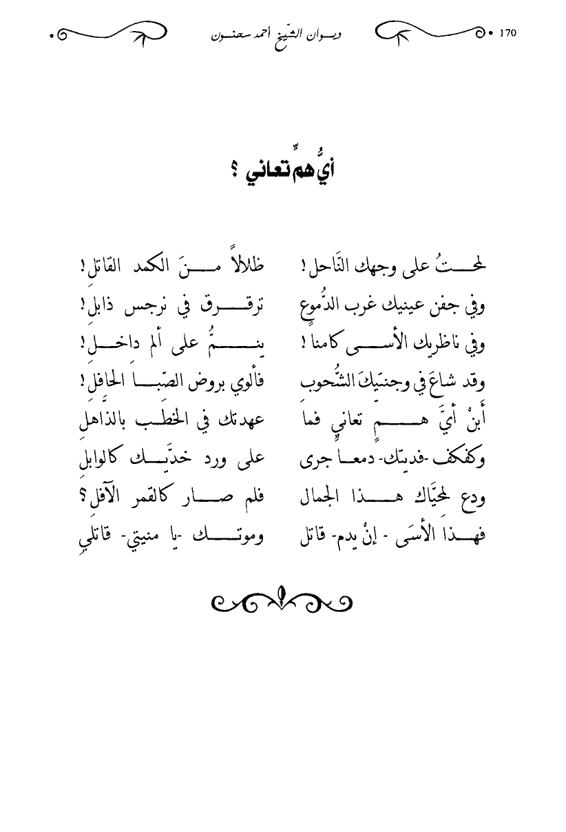 وقد شاع في وجنتيك الشحوب … فألوي بروض الصبا الحافل!