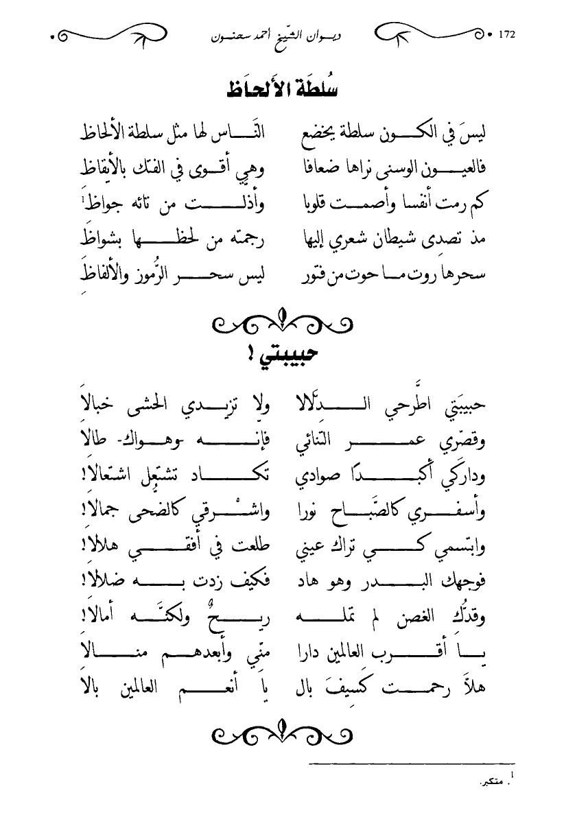 ليس قي الكون سلطة بخضع … الناس لها مثل سلطة الألحاظ