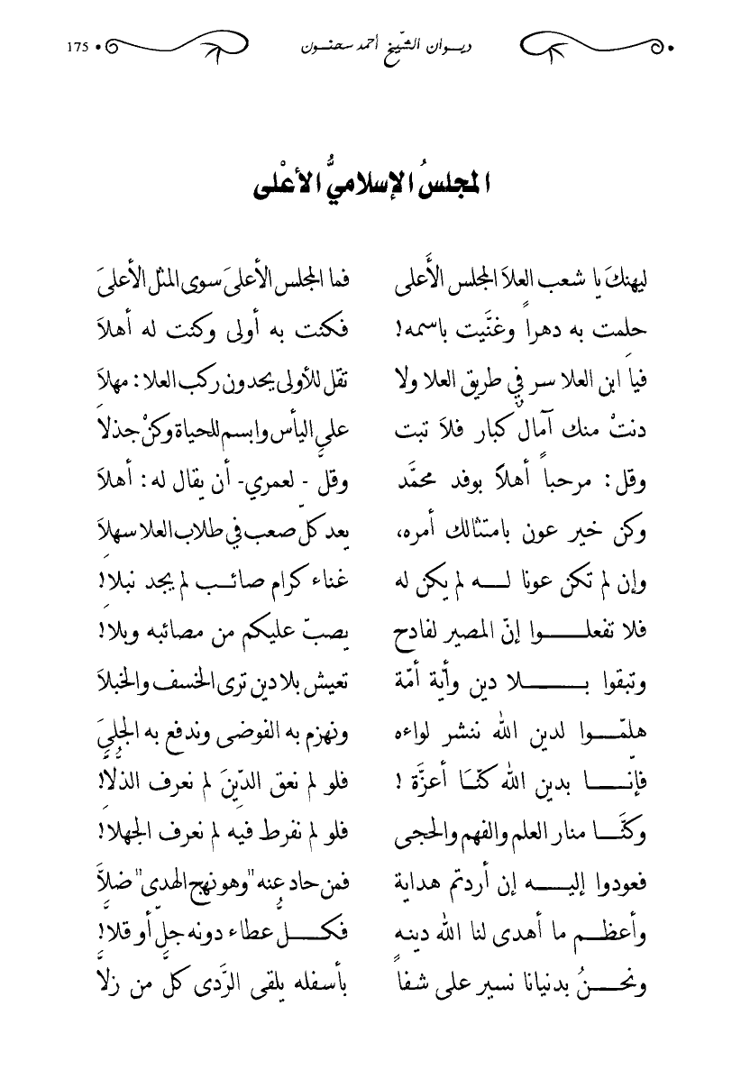 ليهنك يا شعب العلا المجلس الأعلى … فما المجلس الأعلى سوى المثل الأعلى