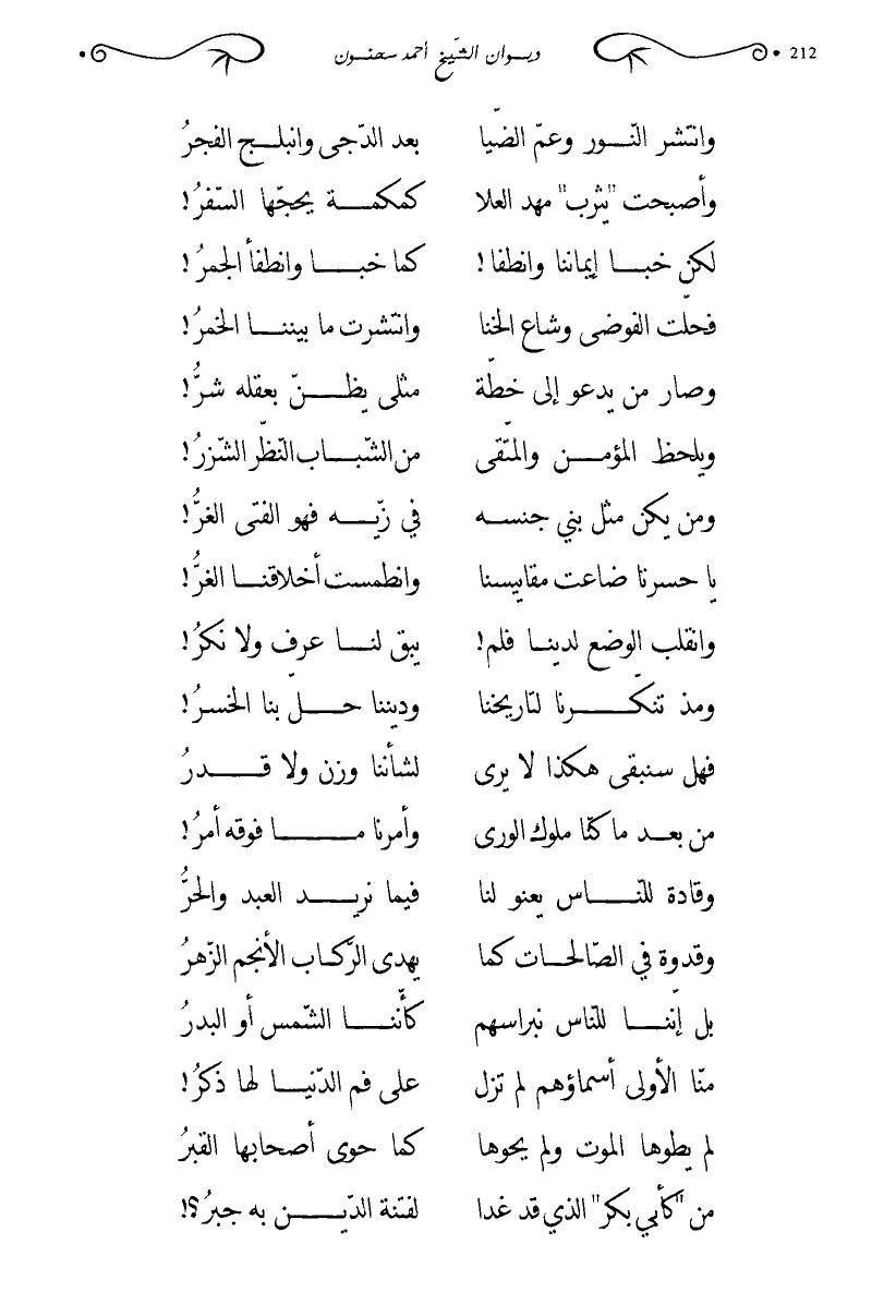 فحلت الفوضى وشاع الخنا … وانتشرت ما بيننا الخمر!