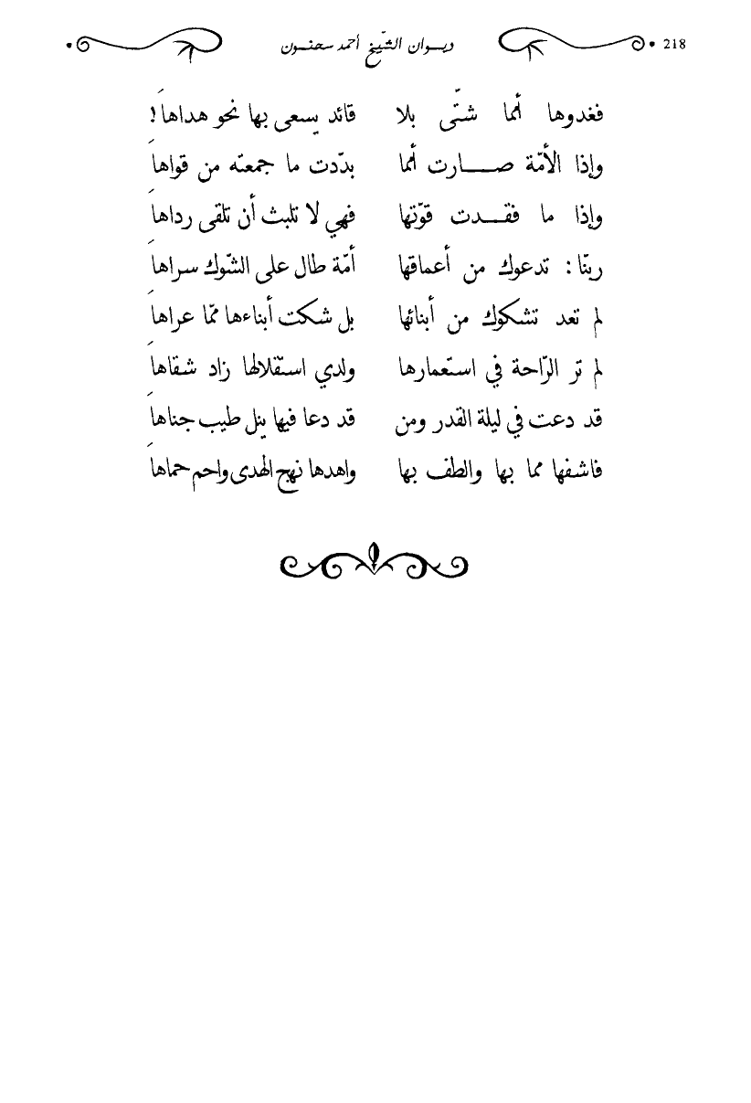 فغدوها أمما شتى بلا … قائد يسعى بها نحو هداها!
