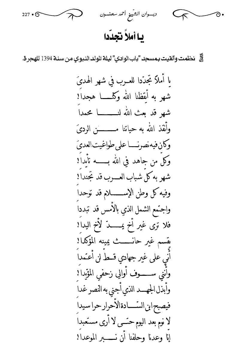 نظمت وألقيت بمسجد "باب الوادي" ليلة المولد النبوي من سنة 1394 للهجرة.