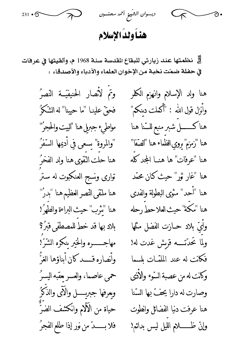 نظمتها عند زيارتي للبقاع المقدسة سنة 1968م، وألقيتها في عرفات