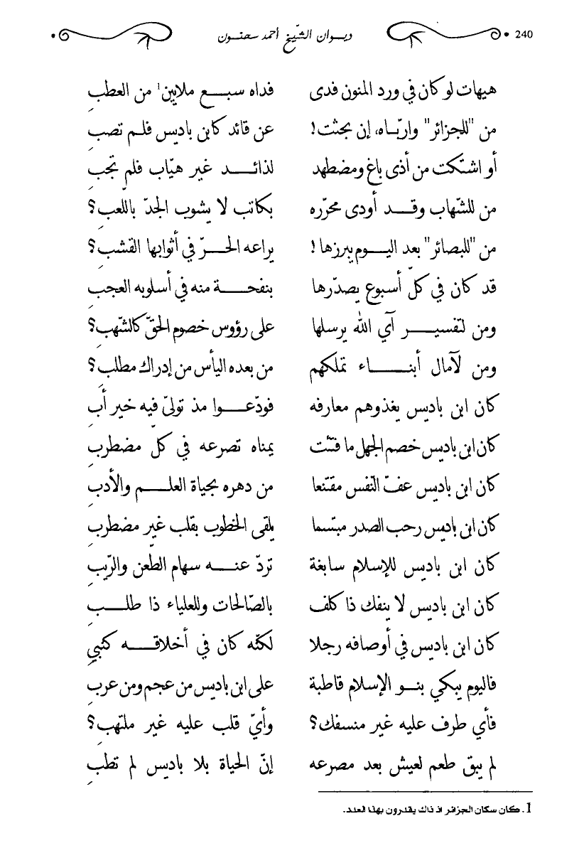 لم يبق طعم لعيش بعد مصرعه … إن الحياة بلا باديس لم تطب