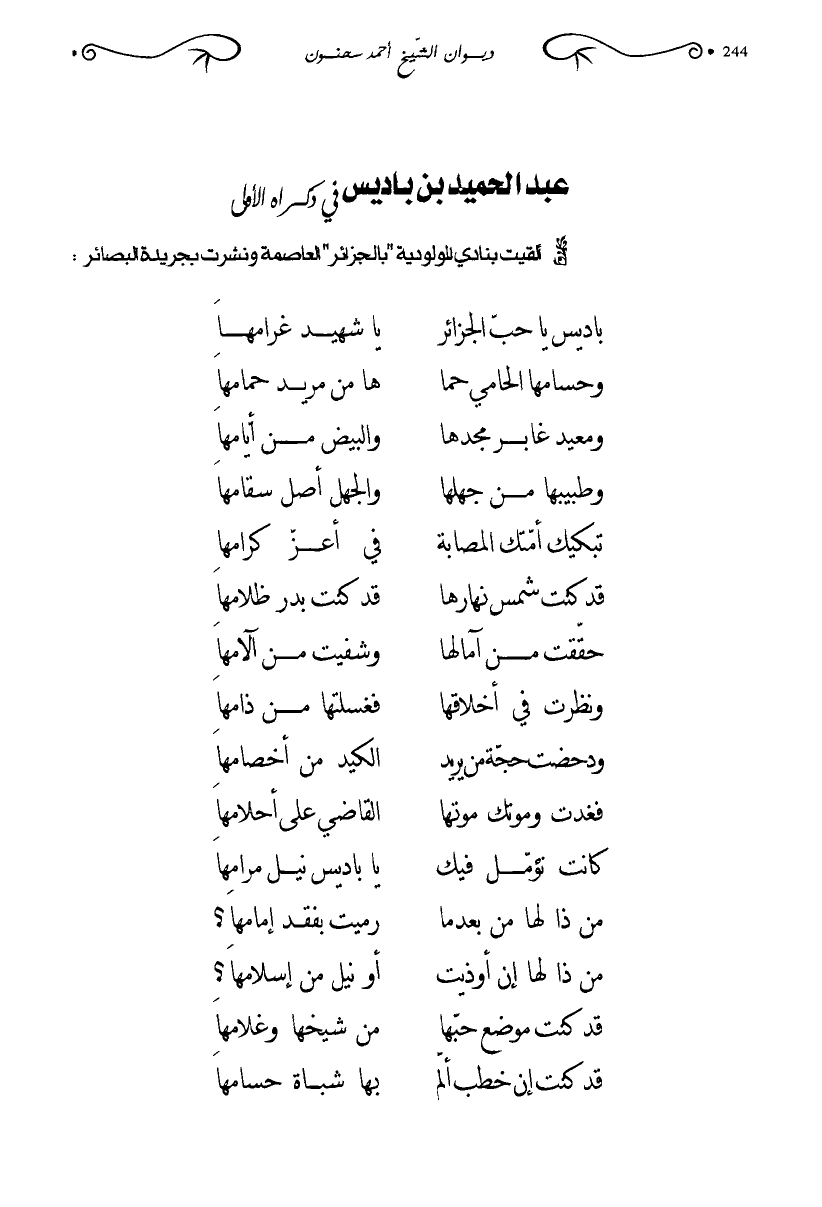 ألقيت بنادي المولودية "بالجزائز" العاصمة ونشرت بجريدة البصائر: