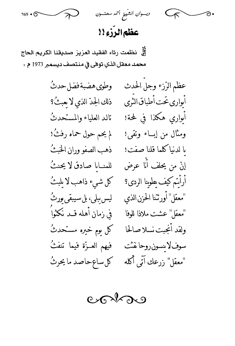 نظمت رثاء الفقيد العزيز صديقنا الكريم الحاج محمد معقل الذي توفى في منتصف ديسمبر 1973م: