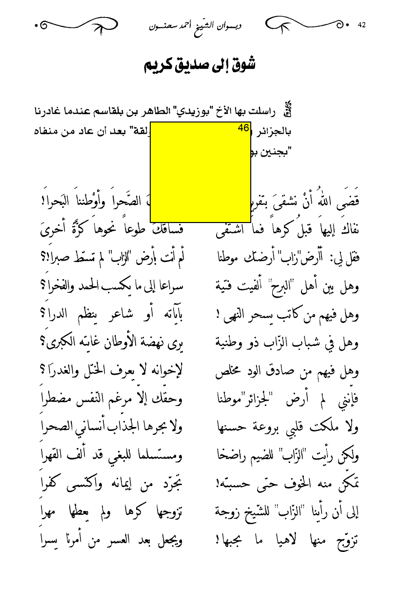 فإنني لم أرض "لجزائر"موطنا … وحقك إلا مرغم النفس مضطرا