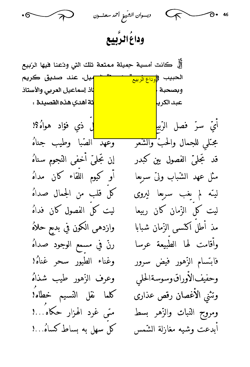 أي سر فصل الربيع حواه … فغزا كل ذي فؤاد هواه؟!