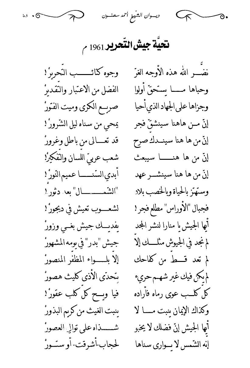 أيها الجيش إن فضلك لا يخبو … شذاه على توالي العصور