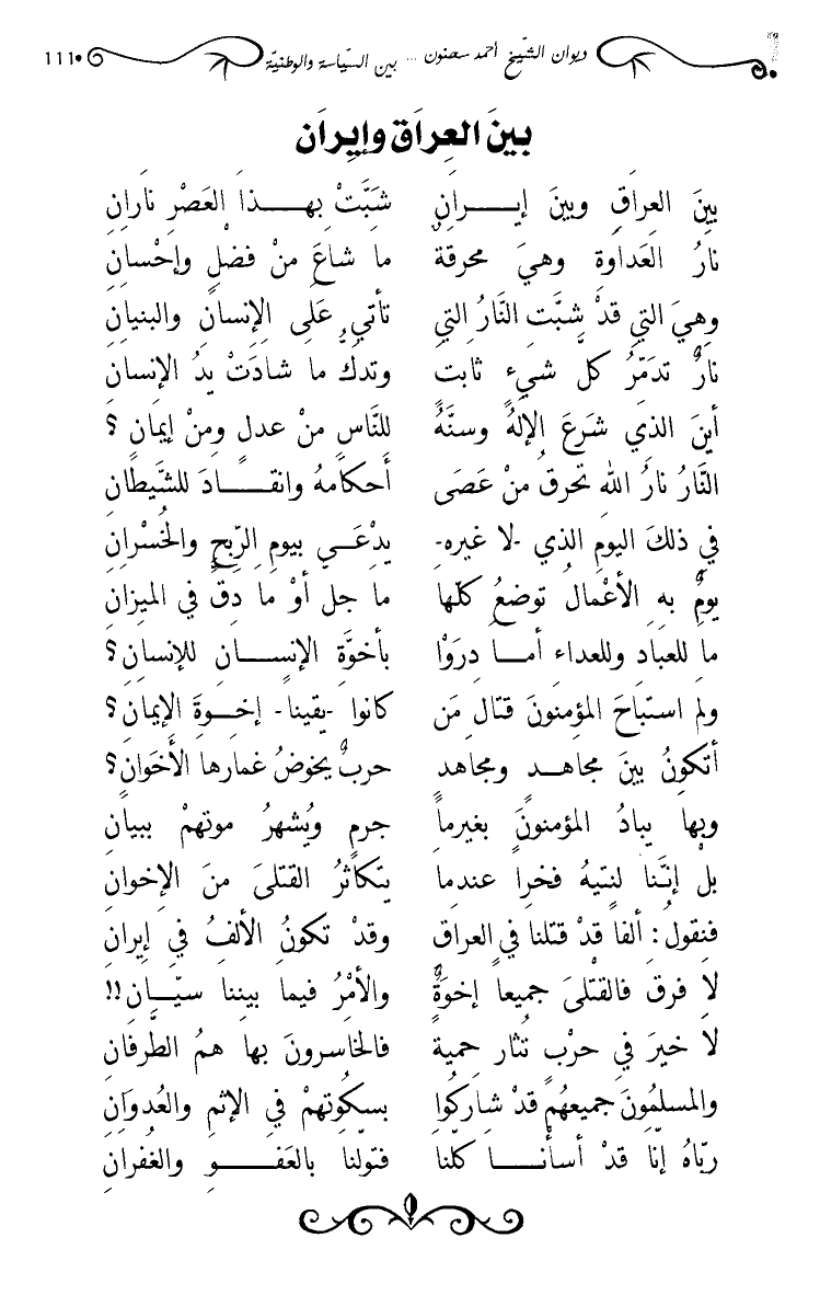 لا خير في حرب تثار حمية … فالخاسرون بها هم الطرفان
