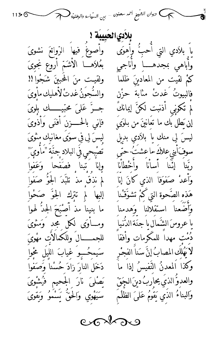 يا بلادي التي أحب وأهوى … وأصوغ فيها الروائع نشوى