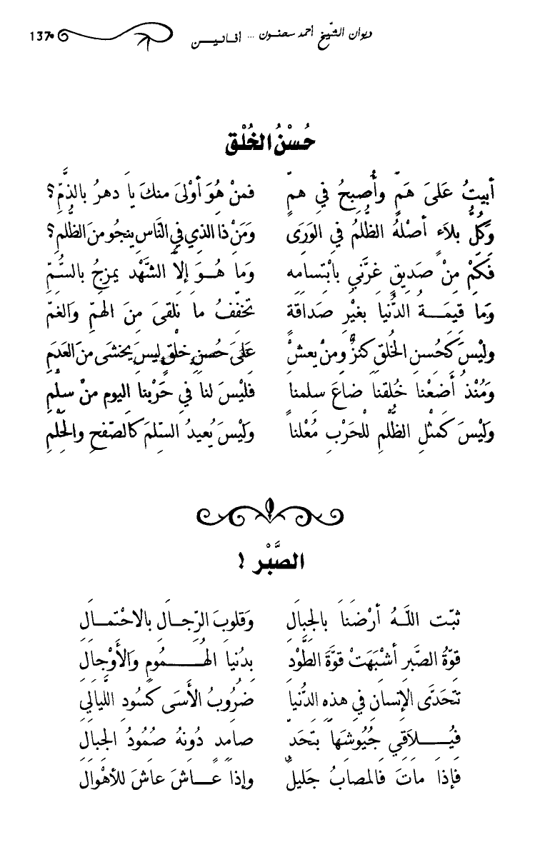 وليس كحسن الخلق كنز ومن يعش … على حسن خلق ليس يخشى من العدم