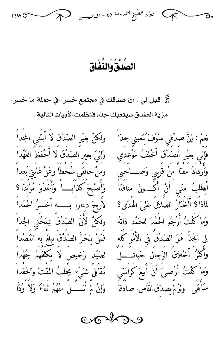سأبقى- ولو لم يصدق الناس- صادقا … وإن لم أنل منهم ثناء ولا ودا