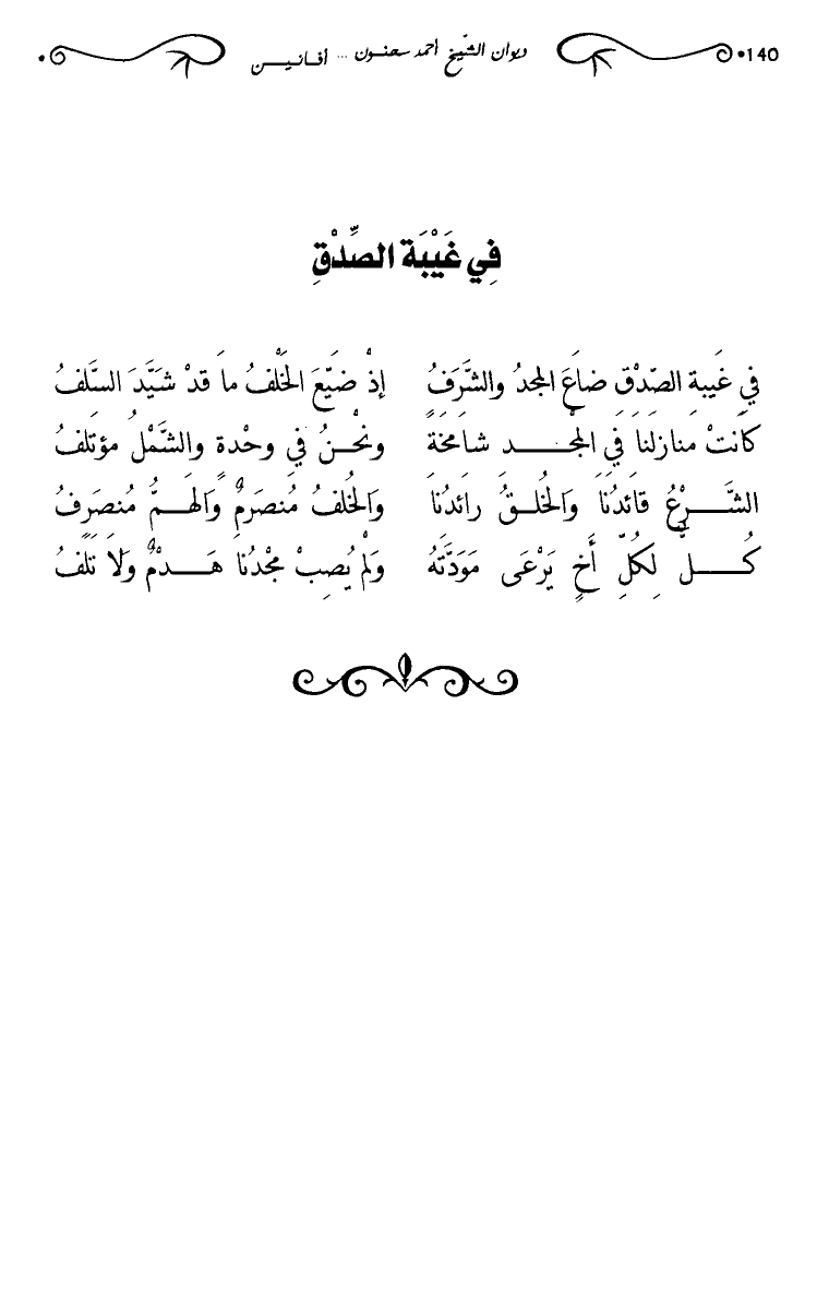 في غيبة الصدق ضاع الجد والشرف … إذ ضيع الخلف ما قد شيد السلف