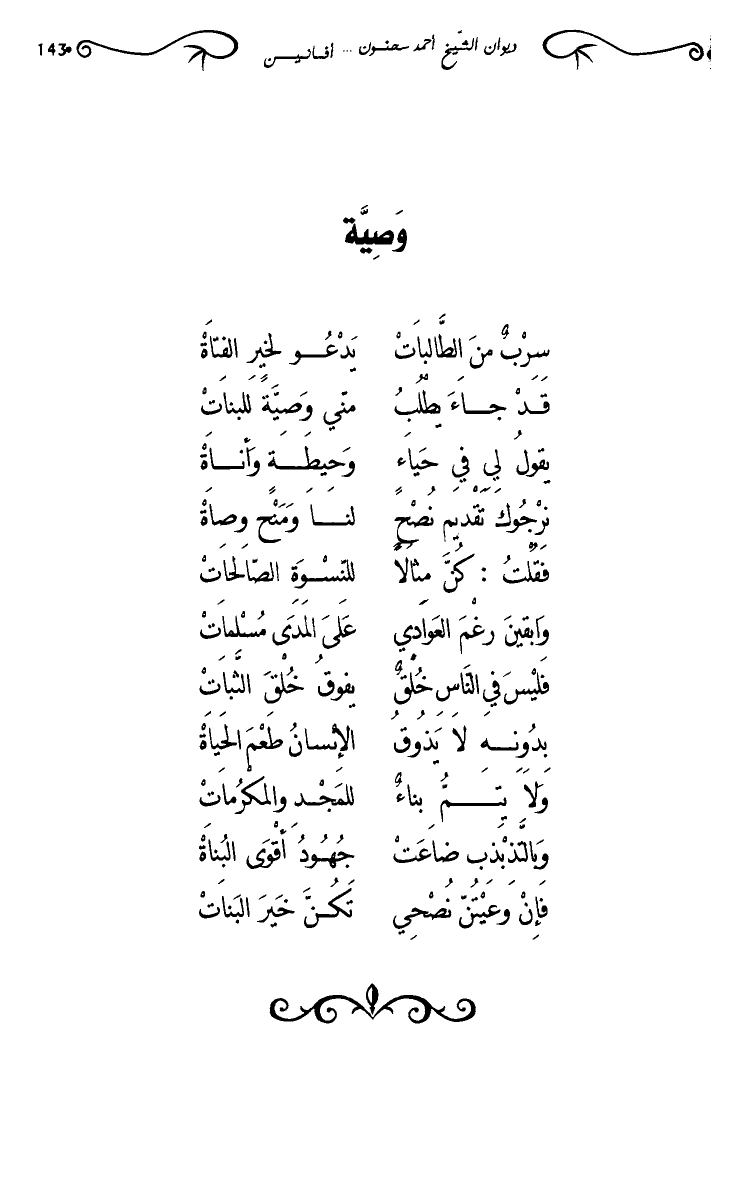 فإن وعيتن نصحي … تكن خير البنات