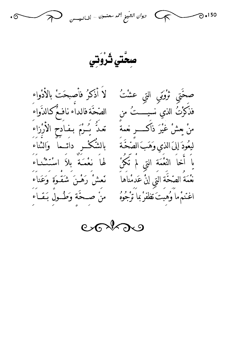 صحتي ثروتي التي عشت … لا أذكر فأصبحت بالأدواء