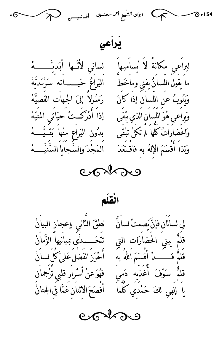 ليراعي مكانة لا يساميها … لساني لأنها أبديه