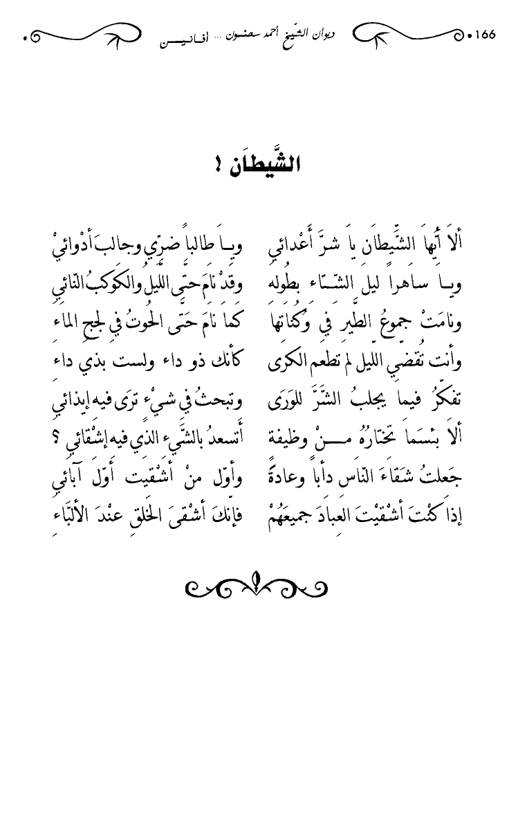 ألا أيها الشيطان لا شر أعدائي … ولا طالبا ضري وجالب أدوائي