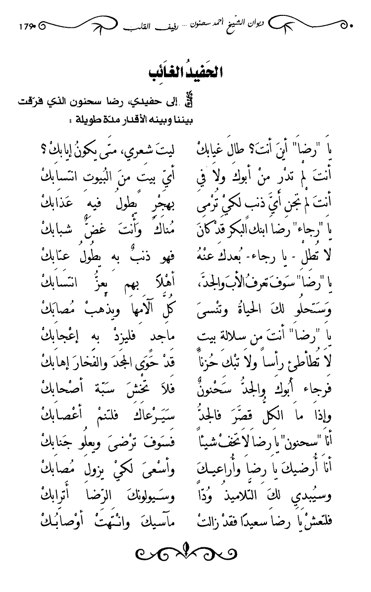 يا "رضا" أين أنت؟ طال غيابك … ليت شعري، متى يكون إيابك؟