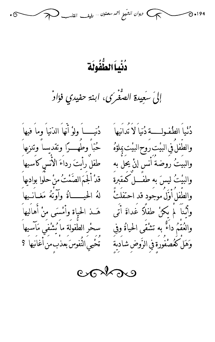دنيا الطفولة دنيا لا تدانيها … دنيا ولو أنها الدنيا وما فيها
